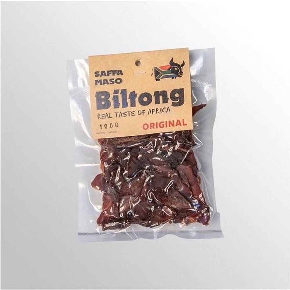 Sušené hovězí maso SAFFA MASO BiltongOriginal, 100 gSušené hovězí maso SAFFA MASO Biltong Original je ideální pro sportovce, na túry, výlety i outdoorové výpravy. Stejně tak si ho vychutnáte rovněž doma jako rychlou večeři či svačinu. Vyrábí se ze šťavnatého hovězího masa, které je marinováno ve směsi a poté šetrně sušeno 7 až 10 dní. Nabízí bohatou a intenzivní masovou chuť. Pro fajnšmekryNa 100 ...