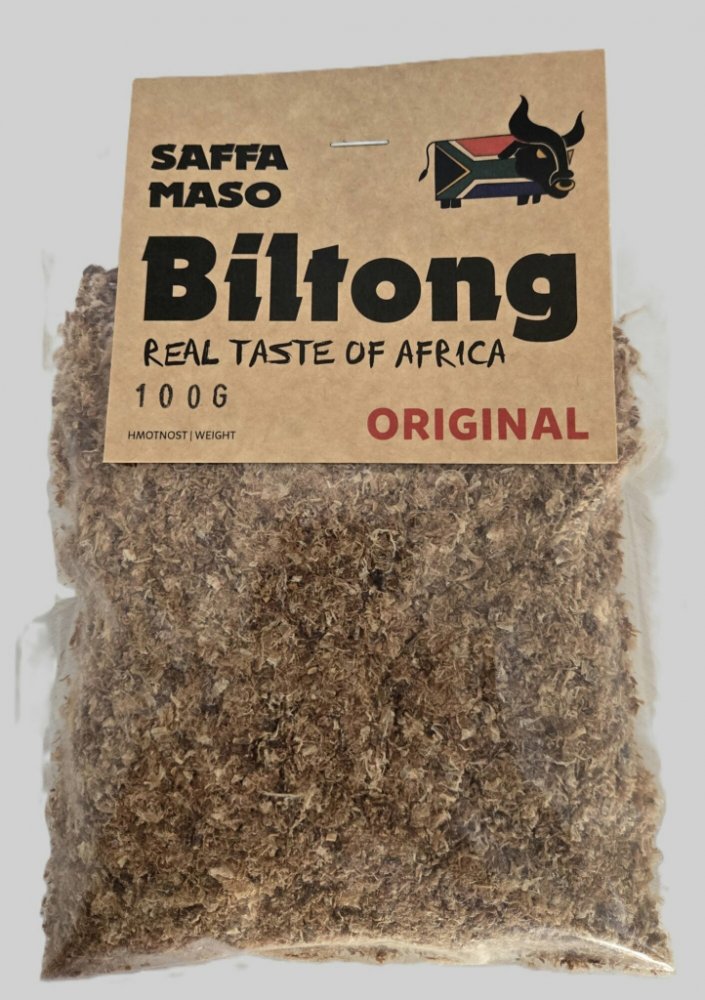 SAFFA MASO Sušené hovězí maso Biltong Original prášek100 gObjevte jedinečný Biltong prášek, známý jako Biltong Powder, který přináší bohatou chuť tradičního jihoafrického biltongu přímo do vaší kuchyně a může obohatit leckteré jídlo. Tento prášek je vyroben z prvotřídního sušeného hovězího masa, které je pečlivě ochuceno a pomalu sušeno, aby zachovalo své bohaté aroma. SAFFA MASO Sušené hovězí mas...