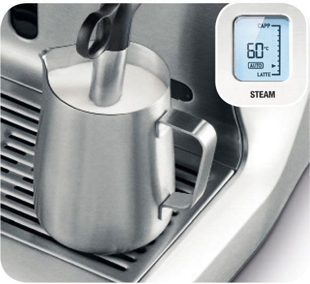 2 samostatné ohřívače vody na přípravu kávy a generaci páry umožňují současně pěnit mléko a extrahovat kávu.