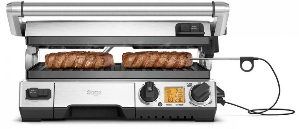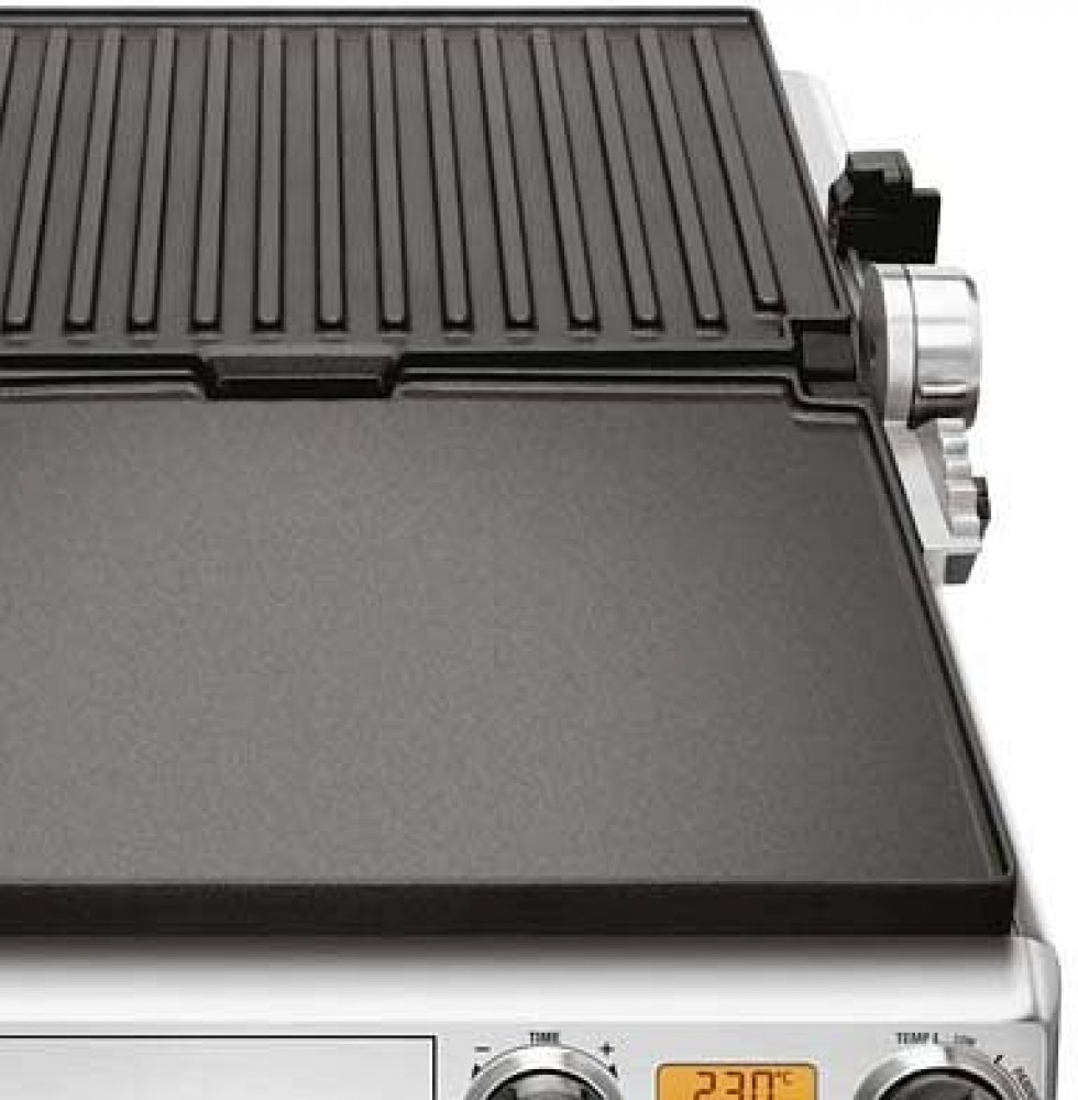 Příprava pokrmů na nepřilnavém povrchu Quantanium PFOA free minimalizuje potřebu používání olejů a nastavitelný sklon spodní grilovací desky umožní odvést veškerý přebytečný tuk z připravovaného pokrmu do vyjímatelné odkapávací misky. Grilování se tedy nemusí obávat ani milovníci zdravých pokrmů. Grilovací desky lze také jednoduše vyjmout pomocí tlačítek, zaměnit spodní grilovací desku za horní, nebo vložit do myčky na nádobí a jednoduše je tak umýt. Jednoduchým pohybem je možné kontaktní BBQ gril Sage The Smart Grill (BGR840BSS) zcela rozevřít a využít ke grilování obě grilovací plochy. Žebrovaná plocha je vhodná pro přípravu masa a ryb, hladká plocha je pak vhodná pro přípravu zeleniny, vajec nebo bramborových placek, palačinek apod. Ideální pro zahradní party s přáteli nebo rodinný oběd na terase.
