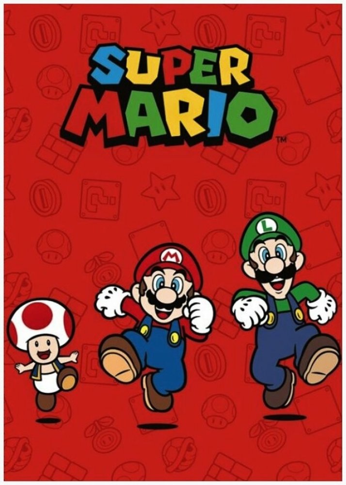 Dětská flísová deka Super Mario - motiv Mario, Luigi a Toad. Zdobí ji obrázek italských bratrů instalatérů Maria a Luigiho s jejich pomocníkem Todem, kteří společně prožívají dobrodružství v Houbovém království ve videoherní sérii Super Mario. Je vyrobená z příjemného a měkoučkého fleece. Okraj je obšitý bavlnkou. Má široké uplatnění po celý rok - zahřeje třeba při sledování televize, nebo poslouž...