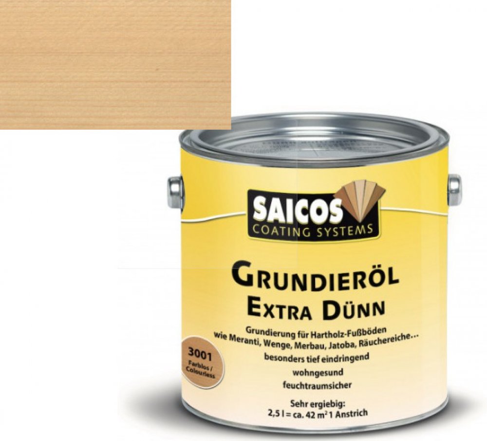 Základový olej-extra řídký je mimořádně snadno a hluboko pronikající, speciální základní nátěr s otevřenými póry, který doporučujeme použít jako 1. nátěr pro exotické a tvrdé dřeviny. Podlahy ošetřené nátěry SAICOS Základový olej-extra řídký a SAICOS Tvrdý voskový olej Premium budou odolné nečistotám, vodě a celkově mimořádně trvanlivé. Vlhkost nátěru s otevřenými póry neuškodí.