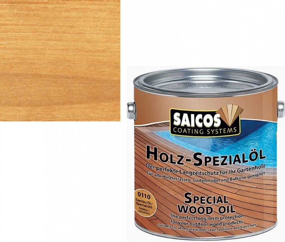 Pro ochranu a údržbu dřevěných teras, konstrukcí pro terasy, balkonů, zahradního nábytku a ostatního dřeva v zahradě. Je možno ho použít pro všechny druhy dřevin, zejména pro tvrdé a exotické dřeviny, rovněž pro tlakově impregnovanou borovici, termo dřevo a ostatní dřeva v exteriéru. SAICOS Speciální olej neobsahuje biocidy ani konzervační látky a proto může být bez problémů použit i v interiéru.