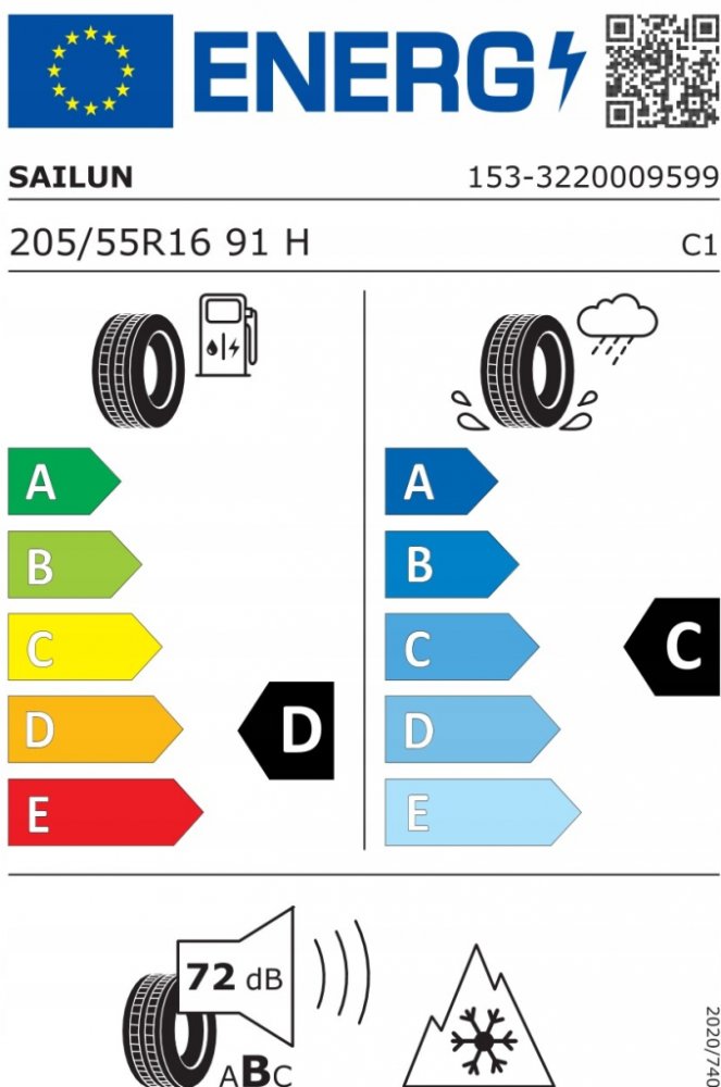 H (=210 km/h) 205 R16 55 91 celoroční Sailun 72 dB B D C 623146