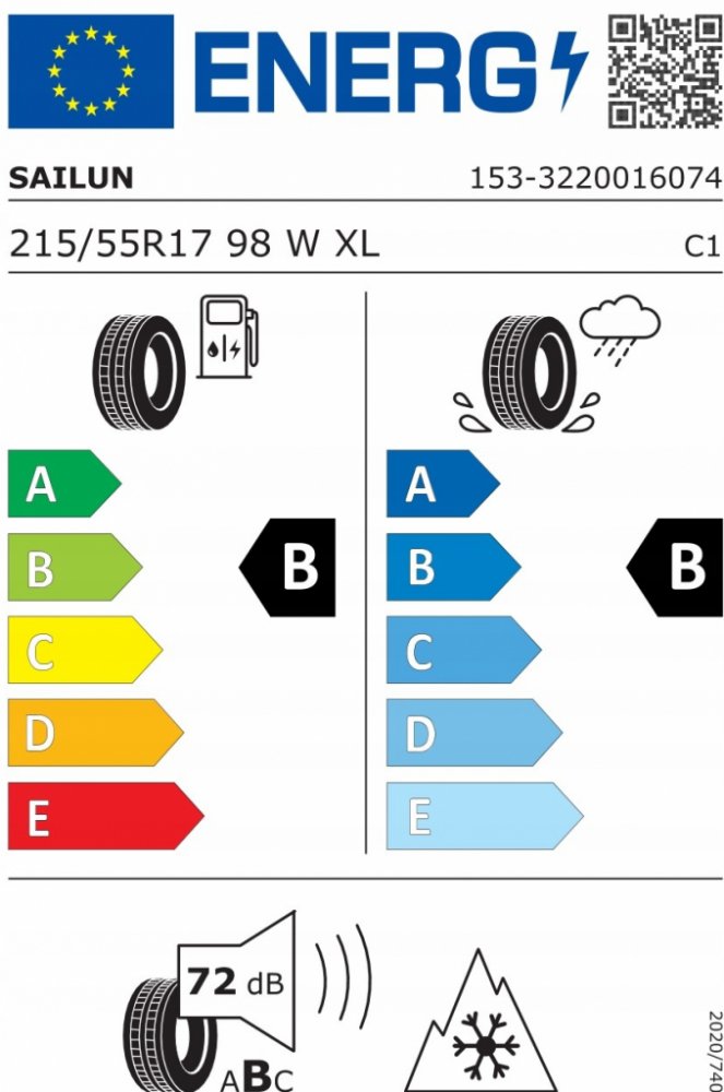 W (=270 km/h) 215 R17 55 98 celoroční Sailun 72 dB B B B 1419150