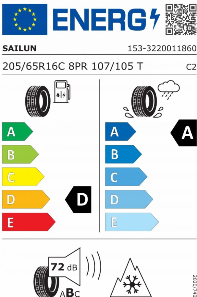 T (=190 km/h) 205 R16 65 107 celoroční Sailun 72 dB B D A 439325