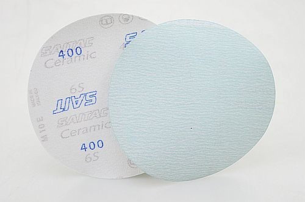 výsek brusného papíru na nerezové oceli, hliník, barvy, laky a tmely brusný disk s upínáním na suchý zip - kruhový výsek z brusného papíru vhodný na všechny druhy laků a tmelů pro broušení za sucha provedení bez děr podklad - papír C, podlepený vrstvou veluru (suchý zip na rubové straně) posyp – keramický korund (otevřená struktura) pojivo – syntetická pryskyřice, stearát snižující zalepování jako samostatná vrstva určený především pro orbitální brusky, případně úhlové brusky s regulací otáček