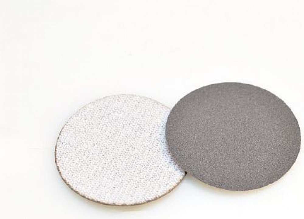 výsek brusného papíru na sklo, mramor, kámen, keramické materiály a plasty, laky a tmely brusný disk s upínáním na suchý zip - kruhový výsek z brusného papíru vhodný na sklo, mramor, kámen, keramické materiály a plasty, laky a tmely pro broušení za sucha i za mokra provedení bez děr podklad - papír C, podlepený vrstvou veluru (suchý zip na rubové straně) posyp – karbid křemíku (uzavřená struktura) pojivo – syntetická pryskyřice určený pro speciální brusky, případně pro ruční broušení