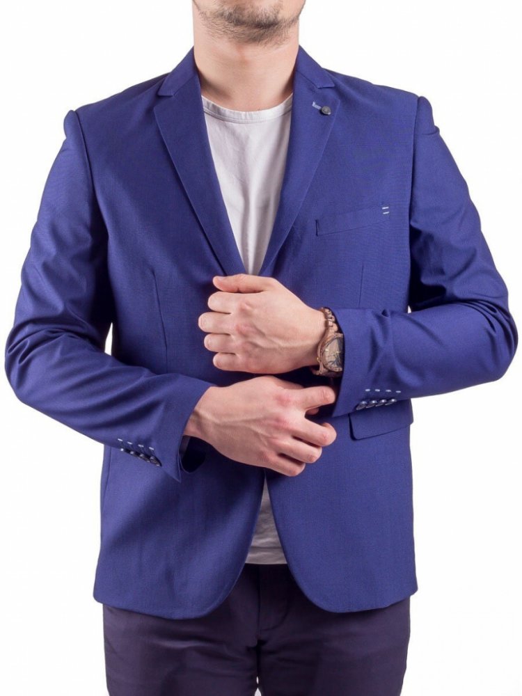Nádherné elegantní sako, které oživí šatník každého muže. Sako se perfektně hodí k obleku, ale i k jeansům. Materiál je velmi pohodlný a příjemný na dotek a vhodný i na každodenní nošení do práce. Sako se zapíná na 2 knoflíky. Na saku z přední strany jsou 3 kapsy, z vnitřní strany také 3 kapsy. Sako velmi pěkně zdobí vzorovaný knoflík a jemné prošití světle-modrou nití na límci. Doplněk tvoří i kn...