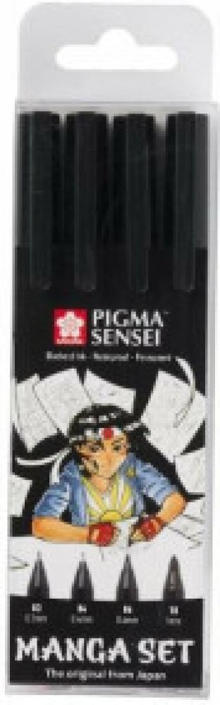 Sakura Sada Manga Pigma Sensei 4 ks Naučte se kreslit jako profesionálové pomocí per Pigma Sensei® se stejným sytě černým inkoustem Pigma®, který je již více než 30 let důvěryhodným inkoustem profesionálů v oblasti Manga. Používejte jemné linky pro výrazy obličeje, nápisy a detaily nebo výrazné linky pro zvýšení působivosti a dramatičnosti. Tato sada obsahuje: 4 x Pigma Sensei: 03 ultrajemný hrot ...