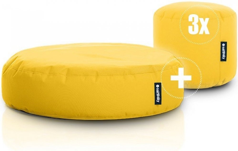 Tento set obsahuje kombinaci sedacího vaku Žiži a tří Taburetů. Vaky lze v setu i barevně kombinovat. V tom případě při objednávce označte jen jednu barvu a ostatní vypište do poznámky s uvedením počtů kusů jednotlivých barev. Nebo nás zkrátka kontaktujte a domluvíme se společně na kombinaci. Jednovrstvý sedací vak. Nemá dodatečný vnitřní obal. Vysoce kvalitní látka je nenáročná na údržbu. Případ...