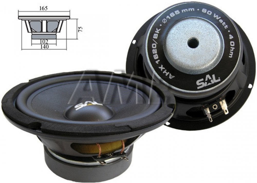 Reproduktor SAL AHX1620 BK 4ohm/60W - basový / středobasový reproduktor Basový, 165mm, kevlar 50-7000Hz, 88dB, kevlar membrána s gumovým závěsem, cívka na hliníkovém těle, určeno pro náročnější použití. Optimální objem basreflexové ozvučnice je 24l, nátrubek KAH202/70mm.