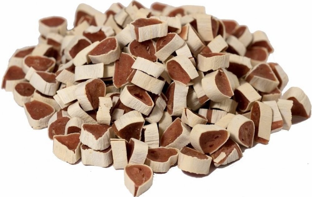 Složení: kachní maso 80 %, treska 15 %, kukuřičný škrob 1 %, sójový protein 1 %, konzervanty