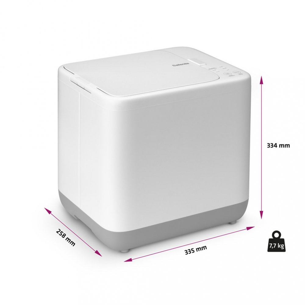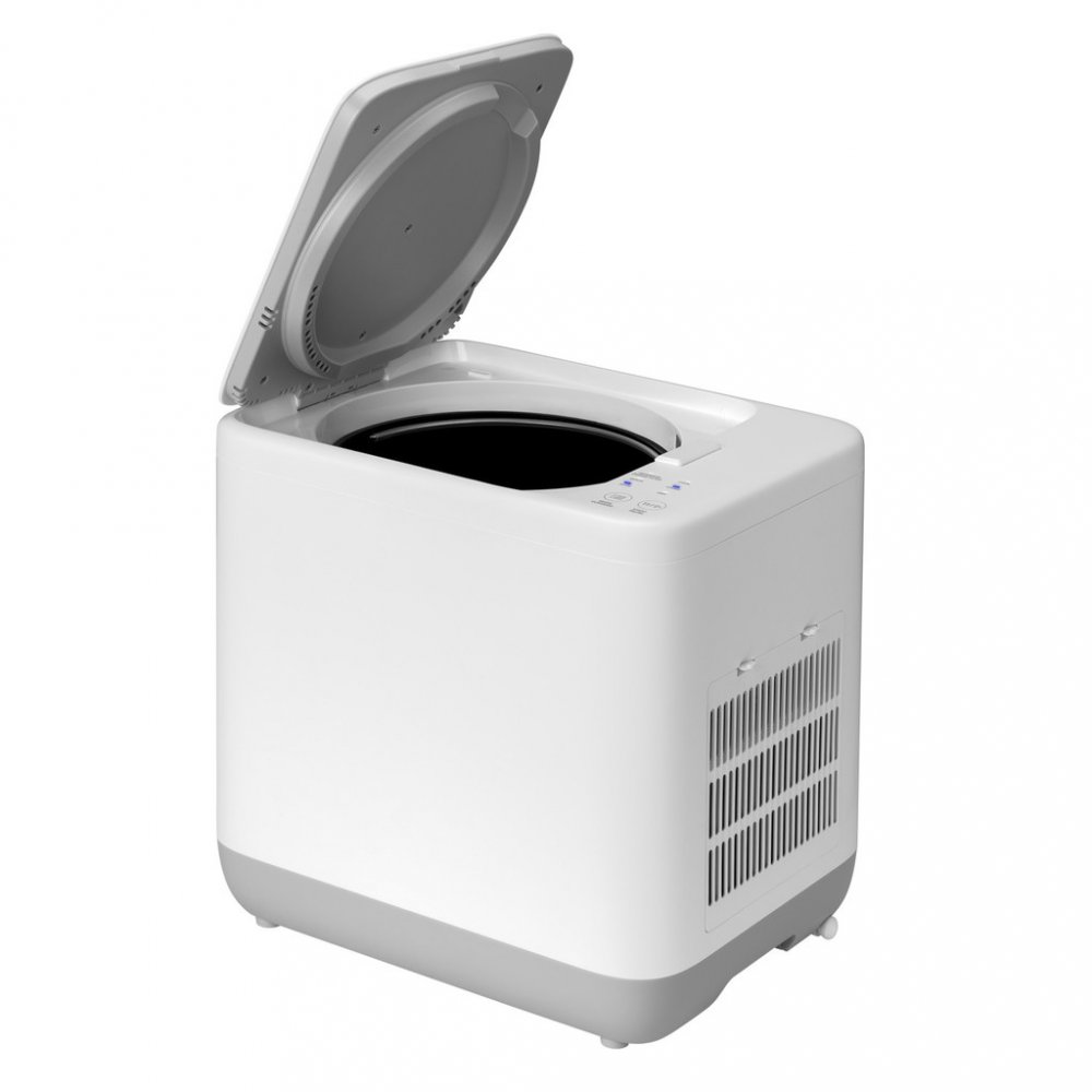 Vzhledem k rozměrům 33 × 25,7 × 33,4 cm (při hmotnosti 7,8 kg) se zařízení vejde prakticky do každé kuchyně, aniž by překáželo při běžných činnostech. Jeho hlučnost je jen 50 dB, což je srovnatelné třeba s běžným ruchem v kanceláři – ekologické zpracování bioodpadu tedy neruší sousedy ani spící děti.
