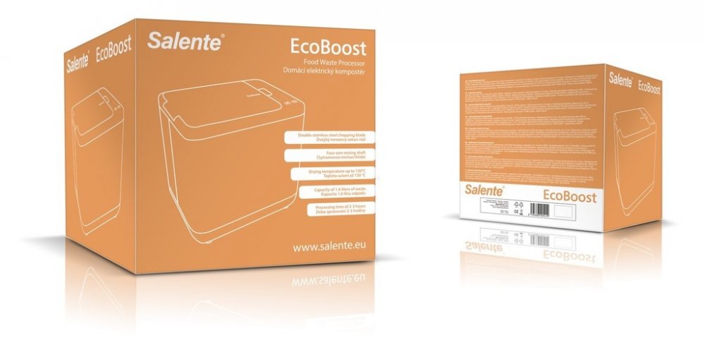 Salente EcoBoost, to je revoluce v nakládání s organickým odpadem. Napodobuje totiž procesy, které se odehrávají v přírodě, ale dělá to u vás doma a v dramaticky zrychleném tempu. Tento elektrický kompostér pracuje na promyšleném třífázovém principu. Nejdříve organický odpad během fáze sušení dehydratuje – při přesně kontrolované vysoké teplotě 130 °C, která současně zlikviduje 99,9 % bakterií a dalších nežádoucích mikroorganismů. Následuje fáze mletí, kdy se vysušený materiál pomocí nerezového nože a míchací hřídele rozemele na jemný substrát. A posledním krokem je chlazení, po němž už je výsledný produkt připravený k bezpečnému použití.