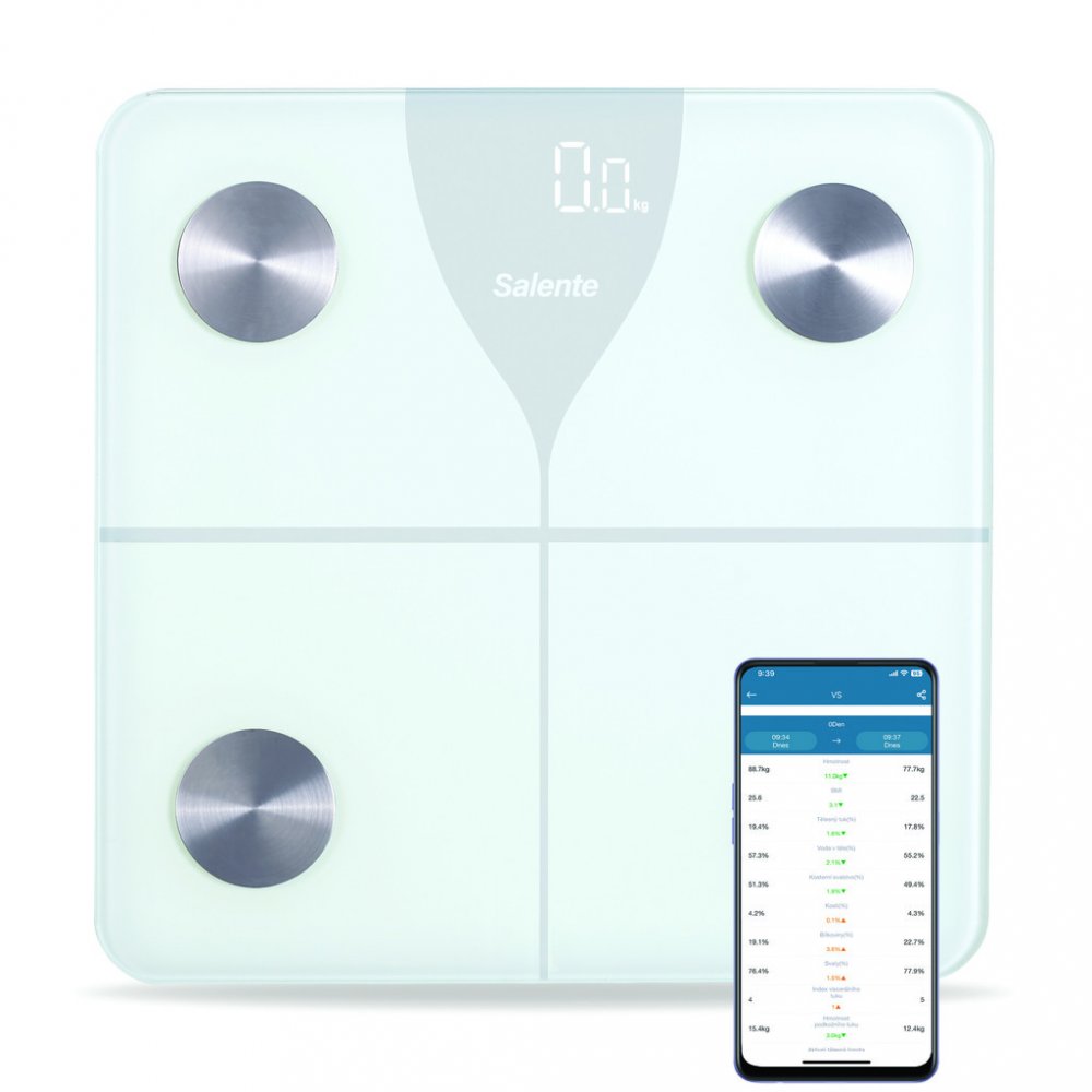 Salente SlimFit, osobní diagnostická fitness váha, Bluetooth, bílá