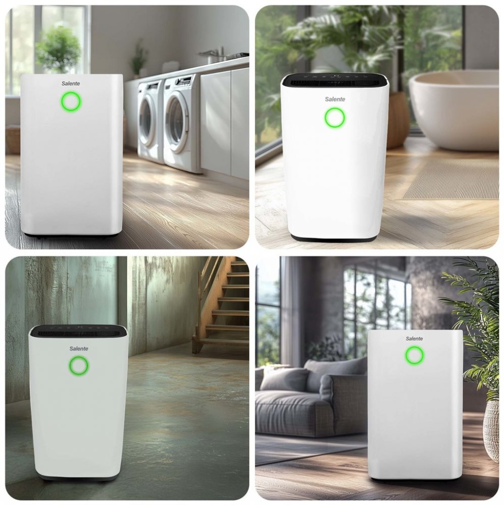 Salente WaterStar20 je skutečným hrdinou v boji s vlhkostí. Tento moderní odvlhčovač můžete využít v jakékoliv místnosti do velikosti 100 m2 – efektivně si poradí s problémy, jako jsou plísně, zatuchlý vzduch, orosená okna nebo nadměrná vlhkost způsobená přetápěním.