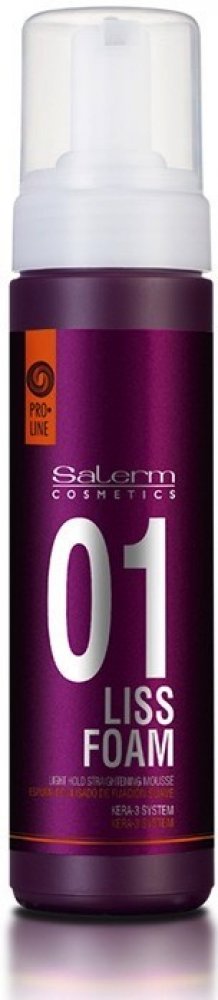 Salerm Pro.Line Liss Foam odstraňuje krepacení, usnadňuje a zlepšuje výsledek narovnání pomocí žehličky nebo fénu. Nefixuje. Vlasům poskytuje ochranné a obnovující složky díky komplexu keratinu o různé molekulové hmotnosti, tzv. Kera-3 System. Termoaktivní molekula (BCA Liss System) vlasové vlákno chrání proti vysokým teplotám a zároveň působí jako spojovač keratinu s vlasem. Pěna se rychle vstřeb...