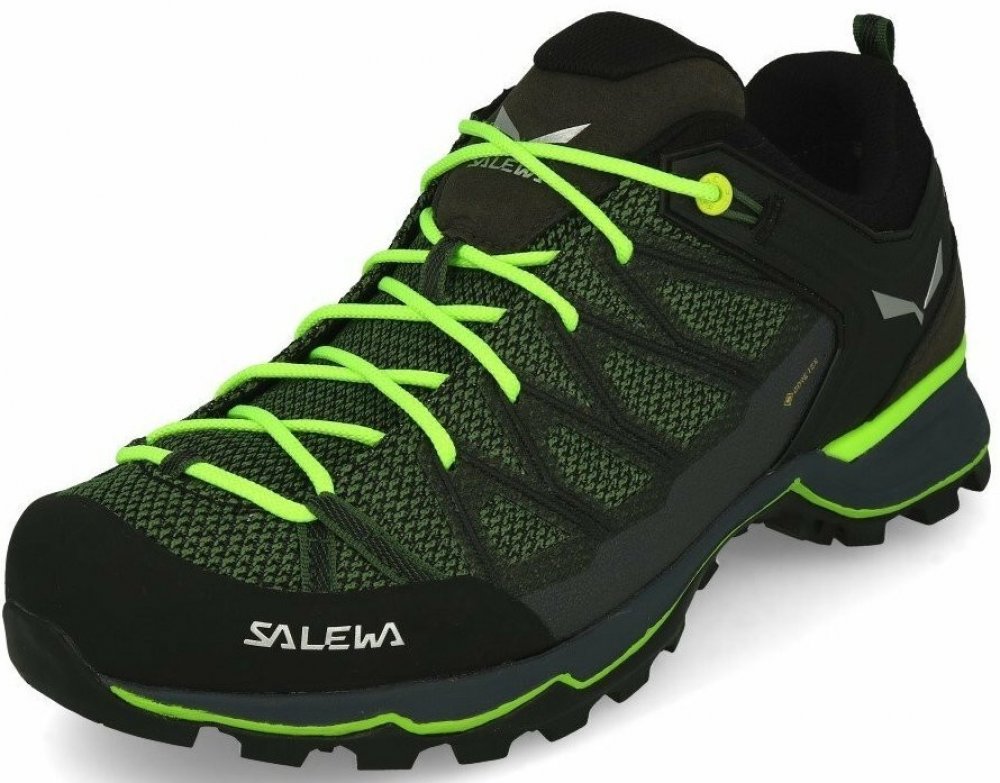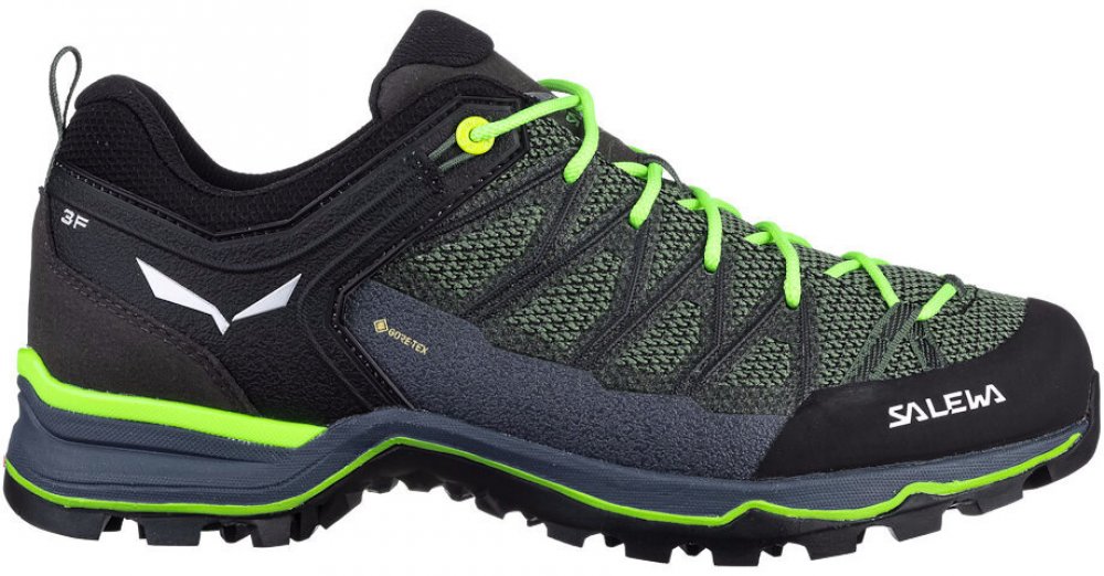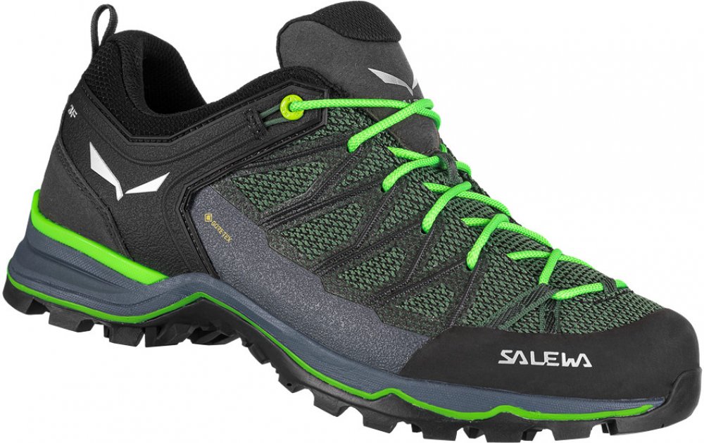 Salewa nízké síťovina 448 g Gore-Tex na středně náročný terén na lezení a ferraty černá pohorky Mtn Trainer Lite Gore-Tex, Pomoca jarní/letní/podzimní na šněrování standardní šířka se střední výbavou na středně náročnou turistiku se středně tuhou podešví s obsázkou na špičce EVA Pomoca s výstuhou u prstů 13 mm
