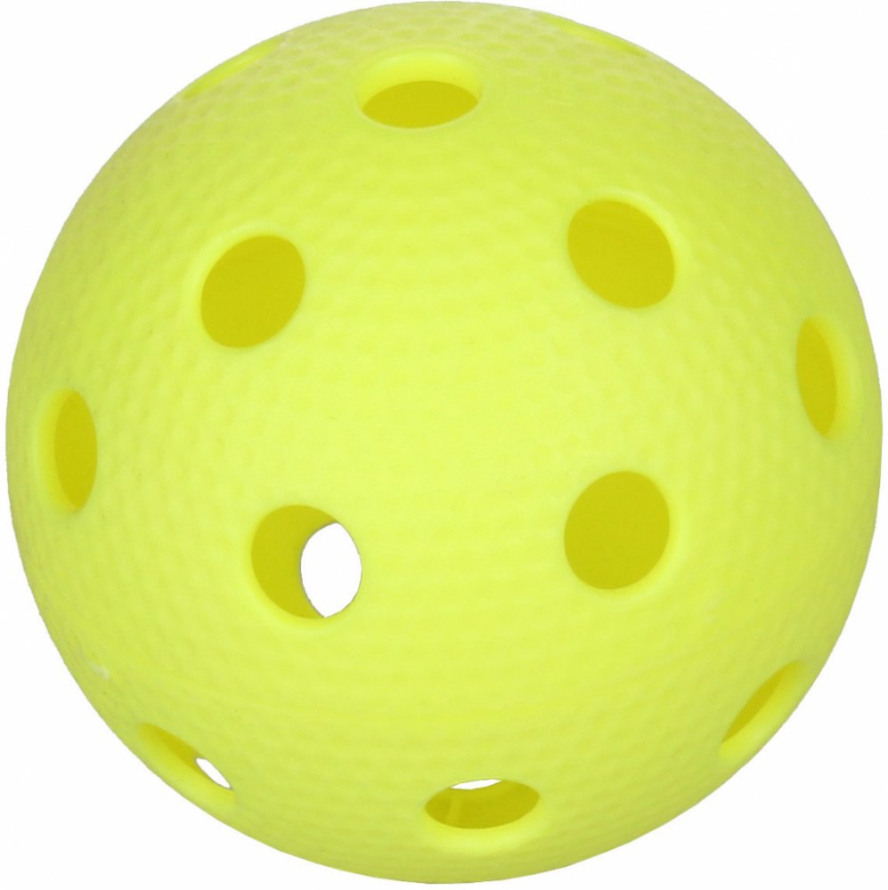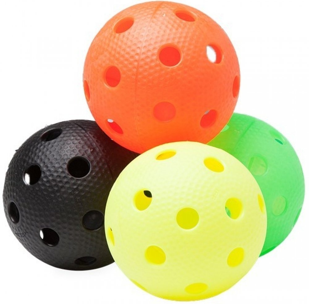 Nově vylepšený profesionální certifikovaný florbalový míček s perfektními aerodynamickými vlastnostmi.