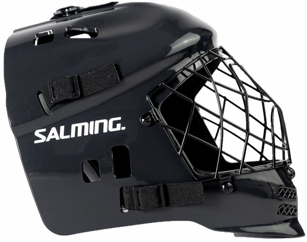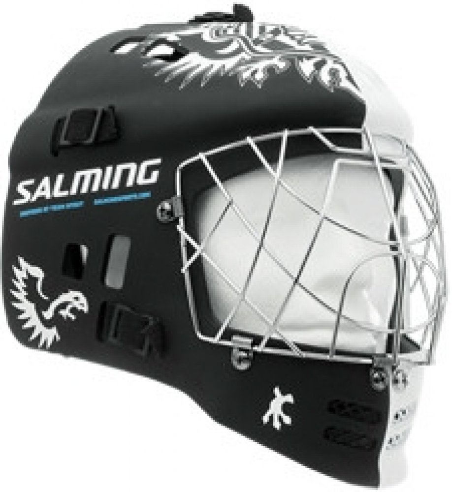 Přilba Salming Core Helmet: Profesionální juniorská helma pro florbalové brankáře vás ochrání za každé situace. Kromě elegantního designu se pyšní skvělým tvarováním, díky kterému padne téměř každému mladému florbalistovi. Velmi tenké černá mřížka umožňuje maximální výhled a to i do stran. Pro ještě lepší pozici můžete využít nastavitelné řemínky, pomocí kterých helmu přizpůsobíte svému tvaru hlavy. Lepší dýchání zajišťuje perforovaná část v oblasti úst.