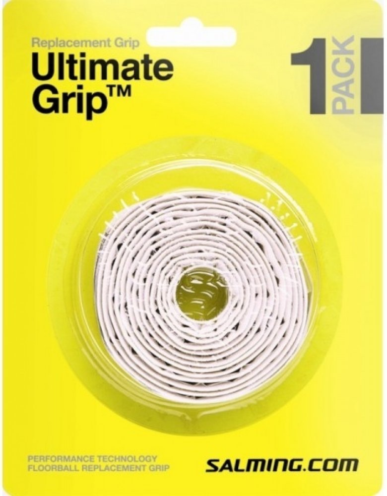Kvalitní omotávka na floorbalovou hůl Salming Ultimate Grip. Omotávka se vyrábí v bílé nebo černé barvě. Tato profesionální omotávka poskytne pevný a pohodlný úchop floorbalové hokejky díky svému měkkému, vypodloženému povrchu, na kterém jsou rovněž malé otvrozy pro lepší odvod potu, díky kterému je jistější úchop hole.