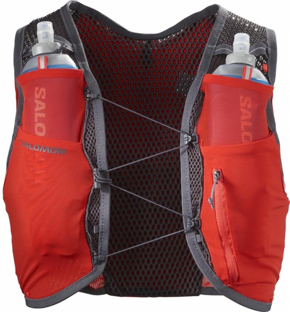 Unisex běžecká vesta Salomon Active Skin 4 With Flasks inspirována profesionálními sportovci poskytuje jednoduchou hydrataci a větší svobodu pohybu díky měkkým látkám a jednoduchému systému uzavírání. Lehké látky zlepšují rychlost schnutí a řízení vlhkosti, poskytují špičkový výkon, pohodlí a odolnost proti zápachu. Se dvěma 500ml lahvemi, které jsou snadno uchopitelné, můžete bez námahy piť při první známce žízně. Elastický popruh také umožňuje snadné dýchání pri intenzivní činnosti. Sensifit poskytující stabilitu a svobodu pohybu Kompatibilní s 1,5litrovým hydratačním vakem Uchopte, co potřebujete právě tehdy, když to potřebujete díky snadnému přístupu, modulárním prostorům a bezpečným kapsám Vysoce pružná a prodyšná látka Quick link vám umožňuje rychle upravit batoh za běhu. Elastická látka usnadňuje dýchání, když naberete tempo 2 přední strečové kapsy: Rozšiřitelné přední kapsy pro uložení základních věcí, ke kterým chcete mít přístup na cestách 2 přední kapsy na flasky: Tyto přední kapsy jsou navrženy tak, aby se do nich vešly měkké láhve Salomon, a také omezují jejich poskakování. Horní elastické smyčky zajišťují vaše láhve a udržují je připravené k pití Objem: 4 litry Hmotnost: 202 g Včetně 2 x 500ml Salomon Soft Flask Unisex (pánské číslování)