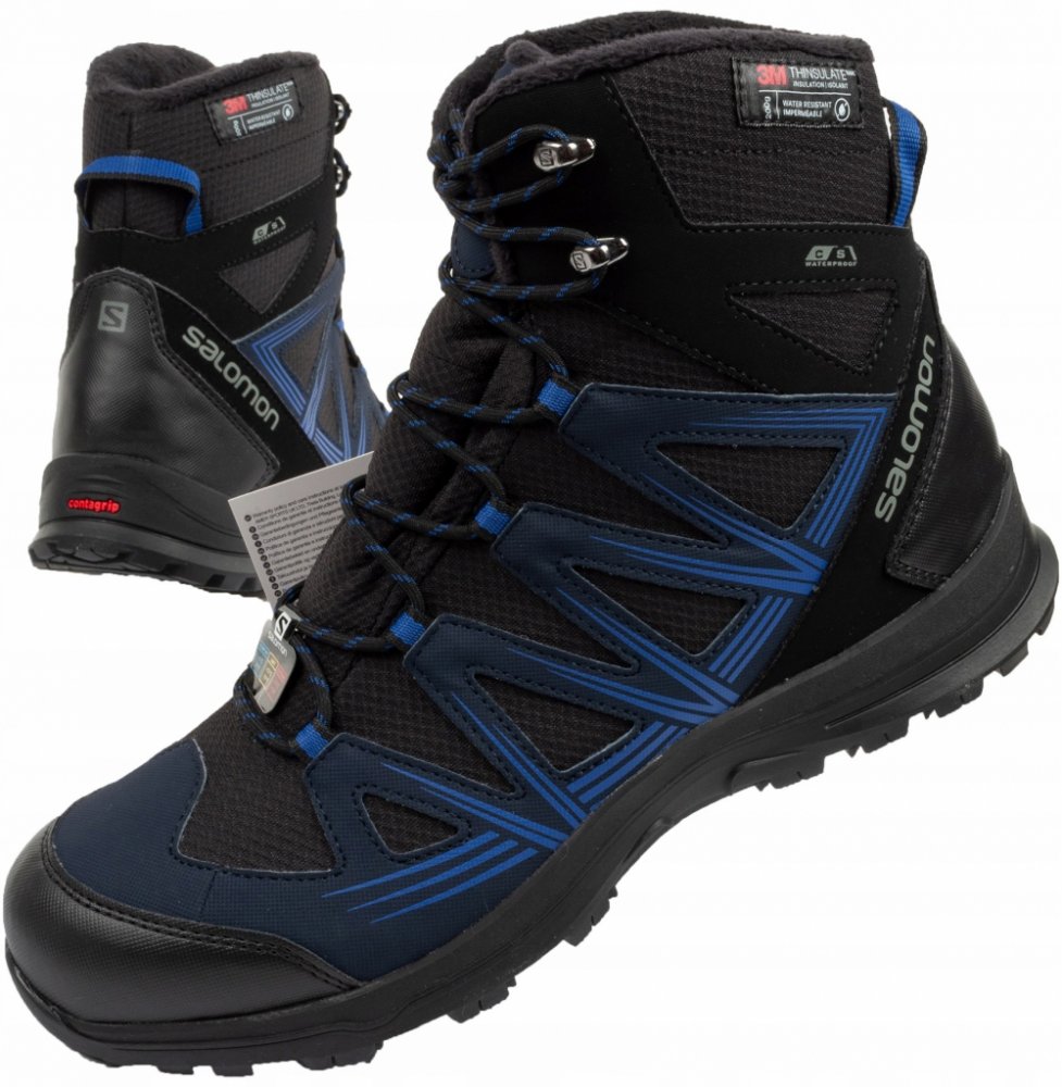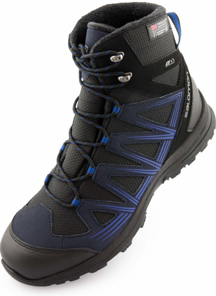 Pánská kotníková obuv od značky SalomonWood odolný svršek vyrobený z nejkvalitnějších textilních a syntetických materiálů.Límec svršku je zevnitř lemován příjemným fleecem.V obuvi je použita izolace 3M Thinsulate 200 g.Za trvalou impregnaci materiálu je zodpovědný DWR.Zesílená špička a pata ochrání obuv před poškrábáním.Tlumící podrážka z pěny EVA.Vyjímatelná stélka Ortholite.Terénní podešev Conta...