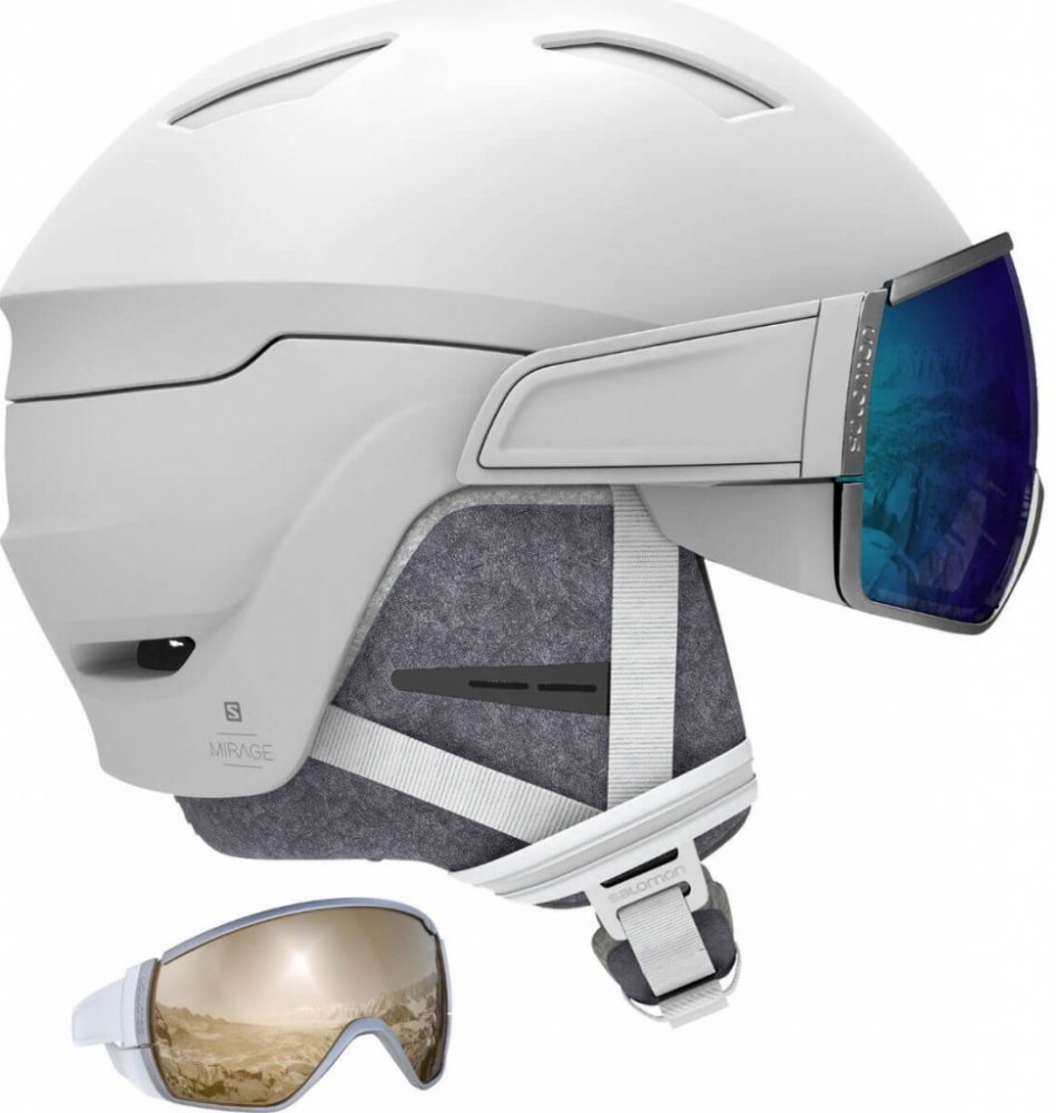 Moderní helma s integrovaným čelním sklem. MIRAGE je jedinečná helma postavená na technologii EPS4D. Je vybaven snadno vyměnitelným systémem čoček a exkluzivním systémem Motion Shield pro pohodlí, nošení a pohodlí, zatímco systém Salomon Custom Dial Fit poskytuje rychlé a přesné přizpůsobení. Tato helma obsahuje dva hledí, kat. S1 a kat. S3. Maximální pohodlí Tento exkluzivní systém výměny čoček bez použití nářadí, exkluzivní pro Salomon, způsobí, že každý zážitek z lyžování bude bez stresu. Best Comfo