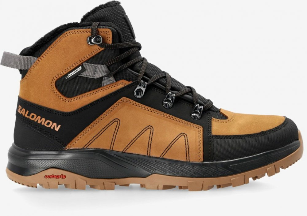 Zimní obuv Salomon Outchill Thinsulate ClimaSalomon Waterproof je extrémně funkční bota, která je vhodná do náročných povětrnostních podmínek. Membrána ClimaSalomon Waterproof je voděodolná a zvyšuje tak vaši ochranu proti vlhkosti. Zároveň si boty ale ponechávají dostatečnou prodyšnost, aby vám byly pohodlné po celý den. Díky syntetické izolaci 3M Thinsulate insulation zůstanou nohy v teple, chráněné před chladem a zimou. Kotníkový střih boty eliminuje možnost úrazů a dodává extra pocit bezpečí a stability. Fleecová podšívka poskytuje příjemně měkký a hřejivý zážitek z chůze. Odolný svršek vyrovený z přírodní kůže a polstrovaný jazyk přispívají k pohodlí. Nechybí ani podrážka Winter Contragrip s perfektní trakcí, která vás podrží i na zledovatělém povrchu. Tradiční šněrovací systém Izolace 3M Thinsulate Insulation Winter Contragrip EnergyCell+ OrthoLite CLIMASALOMON WATERPROOF Flexibilní, lehká, plně vodotěsná bota, která zajišťuje úplnou ochranu proti povětrnostním vlivům. ORTHOLITE Díky antibakteriální anatomické stélce OrthoLite se budete cítit jako v bavlnce. Dlouhodobě tlumí nárazy, zabraňuje vzniku nepříjemného zápachu a plísní, odvádí vlhkost a zajistí prodyšnost pro příjemné nošení. ENERGYCELL+ Nová, špičková mezipodešev, která poskytuje výjimečnou návratnost energie a současně výrazné tlumení a trvanlivost.