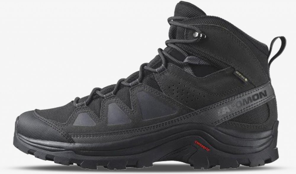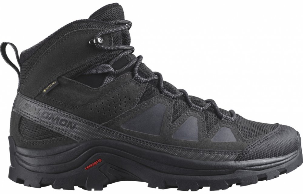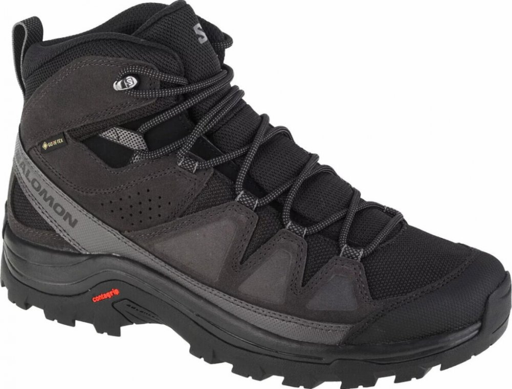 Salomon kotníkové semiš 500 g Gore-Tex na středně náročný terén na vícedenní turistiku černá pohorky Quest Rove Gore-Tex, Contagrip celoroční na šněrování s vyjímatelnou stélkou s plnou výbavou na středně náročnou turistiku se středně tuhou podešví s obsázkou na špičce EVA Contagrip s výstuhou u prstů 12 mm