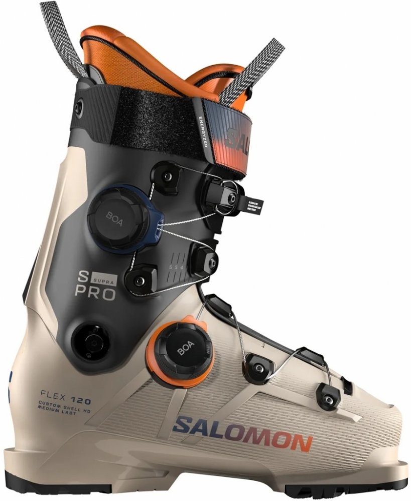 All-Mountain lyžáky s flexí 120 a dvojitým systémem BOA® pro maximální kontrolu a komfort při každém oblouku. | Salomon S/Pro Supra Dual BOA® 120 jsou revoluční lyžařské boty pro pokročilé až sportovní lyžaře, kteří chtějí maximální kontrolu i pohodlí v každém oblouku. Díky unikátnímu systému Dual BOA® Fit lze botu precizně nastavit jak ve spodní části skořepiny, tak v oblasti komínu – utažení je rovnoměrné, rychlé a dokonale přizpůsobené tvaru nohy.Flexe 120 poskytuje dostatek tuhosti pro sportovní jízdu, ale zároveň zaručuje komfort i při celodenním lyžování. Nová konstrukce zajišťuje lepší přenos sil a stabilitu, zatímco anatomicky tvarovaná vnitřní botička nabízí perfektní usazení a pohodlí.S/Pro Supra BOA® 120 posouvají standardy výkonu i komfortu – jsou navrženy tak, aby zlepšily tvůj výkon na sjezdovce a poskytly ti naprostou jistotu při každém oblouku.Parametry Flex: 120 (sportovní) Šířka kopyta: 100 mm (komfortní, přizpůsobivý fit) Určení: pokročilí a sportovní lyžaři Zaměření: carving, all-mountainKonstrukce a technologie Dual BOA® Fit System – dvě kolečka pro individuální a rovnoměrné utažení Precise Fit & Control – lepší fixace chodidla a komínu pro maximální kontrolu Performance Flex 120 – tuhost pro sportovní jízdu a dynamické oblouky Anatomical Liner – vnitřní botička pro pohodlí a optimální usazení All-Day Comfort – kombinace výkonu a pohodlí i při delším lyžováníSalomon S/Pro Supra Dual BOA® 120 jsou boty, které přinášejí novou úroveň přizpůsobení a kontroly – ideální volba pro sportovní lyžaře, kteří chtějí jistotu a pohodlí v každé jízdě.