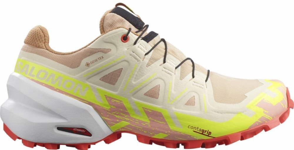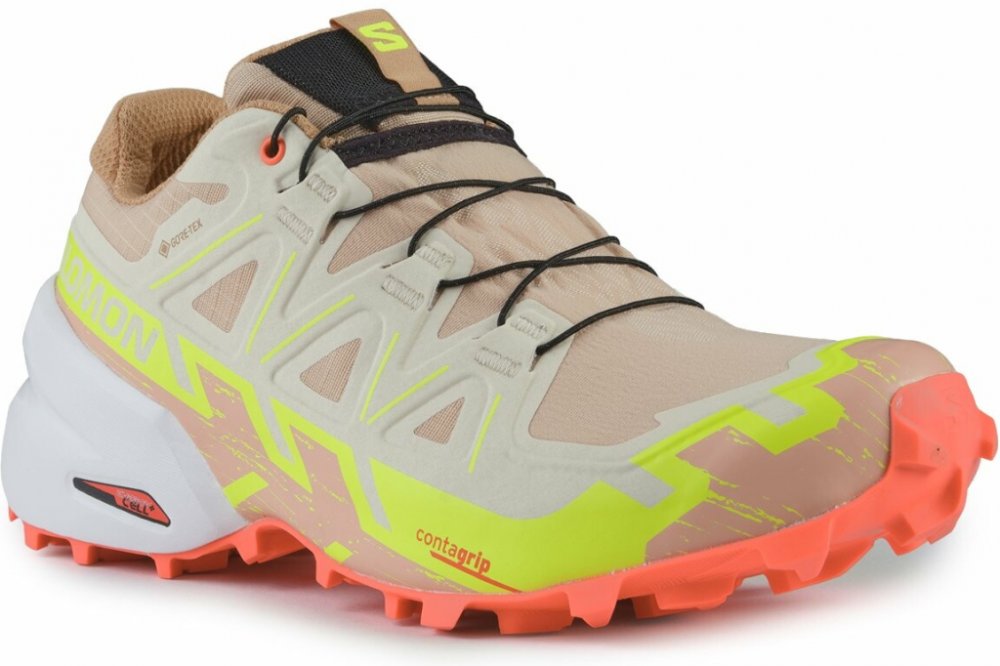 Trailová obuv Salomon Speedcross 6 GTX s vysoce kvalitní nepromokavou membránou Gore-tex, která udrží vaše nohy v suchu a pohodlí i v náročných a blátivých podmínkách. Uvnitř obuvi se nachází tvarovaná stélka OrthoLite, která má anti-bakteriální vlastnosti a pomáhá regulovat zápach.Konstrukce SensifitTM vám poskytne přesné, optimální držení nohy a pohodlí při výkonu. Podrážka Mud Contagrip zajistí maximální přilnavost na nezpevněných, měkkých, drsných a nerovných površích. Směs mezipodešve EnergyCell+ s vysokým odrazem poskytuje výjimečnou návratnost energie spolu s výrazným odpružením a odolností.Obuv je vyrobena z recyklovaného materiálu a disponuje pevnou síťovinou, která zabraňuje zachycení nečistot mezi nohou a stélkou. Využité tkaniny jsou odolné proti roztržení a oděru. Samozřejmostí jsou tkaničky Quicklace známé svým rychlošněrovacím systémem.Tato nová verze legendární trailové obuvi pro technický běh v terénu je ještě lehčí a výkonnější než jeho předchůdce. Síťovina proti nečistotám Recyklovaný materiál Pevná tkanina EnergyCell+ Kapsa na tkaničky GORE-TEX Membrána Gore-Tex udrží vaše nohy v suchu a garantuje velkou úroveň pohodlí. Byla navržena pro náročné aktivity, kdy je zapotřebí vysoká nepromokavost, ochrana a současně i velmi dobrá prodyšnost. SENSIFIT SensiFit poskytuje noze oporu od mezipodešve až po tkaničky, takže obuv bezpečně a pohodlně padne téměř jako by byla šitá na míru. Systém Sensifit dodává pohodlí a přesně obepne a ochrání vaši nohu. MUD CONTAGRIP Mud Contagrip vytvořený pro maximální přilnavost na nezpevněných, měkkých, drsných a nerovných površích. Vvyužívá hluboké a ostré výstupky vyrobené ze směsi, která se zaměřuje na přilnavost. ORTHOLITE Díky antibakteriální anatomické stélce OrthoLite se budete cítit jako v bavlnce. Dlouhodobě tlumí nárazy, zabraňuje vzniku nepříjemného zápachu a plísní, odvádí vlhkost a zajistí prodyšnost pro příjemné nošení. QUICKLACE Dobře známý Salomon rychlošněrovací systém, který zaručuje precizní upevnění nohy v botě během jednoho zatáhnutí za tkaničku. Snadné, rychlé a přesné utažení během vteřiny. Samozřejmostí je i možnost zakoupení nové kevlarové tkaničky a její snadná výměna.