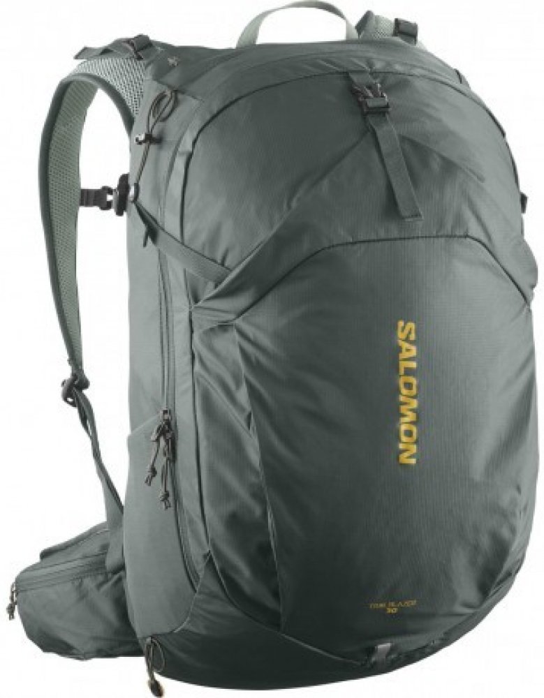 Salomon Trailblazer 30 pro další vícedenní výlety a prozkoumávání měst. Na batohu jsou vylepšeny popruhy a zádový panel, aby bylo maximalizováno pohodlí a prodyšnost – navíc je přidáno více kapes a dynamičtější designové linie pro větší objem a je připraven na všechna vaše dobrodružství. Batoh má minimalistický design s čistými liniemi, je vyroben z kvalitních materiálů a výborně sedí. Uvnitř najdete dostatek prostoru na notebook, tablet (je zde speciální kapsa) a pro hydrovak. Stejně tak batoh disponuje množstvím menších kapes pro uschování menších předmětů a drobností. Nošení zpříjemní široký spodní pás s kapsami a nastavitelným zapínáním vepředu, stejně tak i elastický pás na hrudi, široké vyztužené ramenní popruhy a záda batohu. Batoh má dále i poutko pro připevnění trekových holí a reflexní poutko na uchycení blikačky.Materiál a vlastnosti:100% polyesterKapsy 88% Polyamid, 12% Elastanzádový systém 3D ComfortHydratace - umožňuje pohodlné používání hydrovaku, obsahuje prostor pro hydrovakpouzdro na notebook - uložte svůj počítač do závěsného pouzdra, aby byl chráněn před ostatními věcmi v batohu a nárazy zespodanastavitelný elastický hrudní popruh - elastický hrudní popruh umožňuje roztažení hrudníku při hlubokém nádechukompresní popruhy se rychle a snadno utahují a zajistí, aby byl váš náklad stabilní a nevypadlpopruhy pro zvednutí nákladu - s popruhy pro zvednutí nákladu přitáhnete náklad těsněji k tělu a získáte tak větší stabilitu při nošení batohuramenní popruhy - 3D pohodlné popruhy mají speciální polstrování a pěnu s větracími otvory a zajišťuje tak maximální pohodlí2 pásové kapsy na zipkapsa s otvorem na zipkapsa s bočním přístupem na zipvnitřní prostor na hydrovakhorní kapsa s držákem na klíče2 boční pružné kapsy1 vnější kapsa3D komfortní pás s pěnou EVA - pohodlný 3D pás se vyznačuje zvláštním polstrováním, díky kterému můžete pohodlněji přenášet těžší náklad, a prodyšnou síťovinou pro lepší odvádění vlhkostiZip YKK - vysoce kvalitní, odolné a spolehlivé zipydržák hůlekpoutka navíc - upravte si batoh podle svých potřeb připevněním menších předmětů k těmto poutkům nebo přidejte elastickou šňůrku k zabezpečení předmětůpřídavná reflexní smyčka pro svítilnubez obsahu PFCRozměry: 52 x 30 x 10 cmHmotnost (bez výbavy): 552 gObjem: 30 l