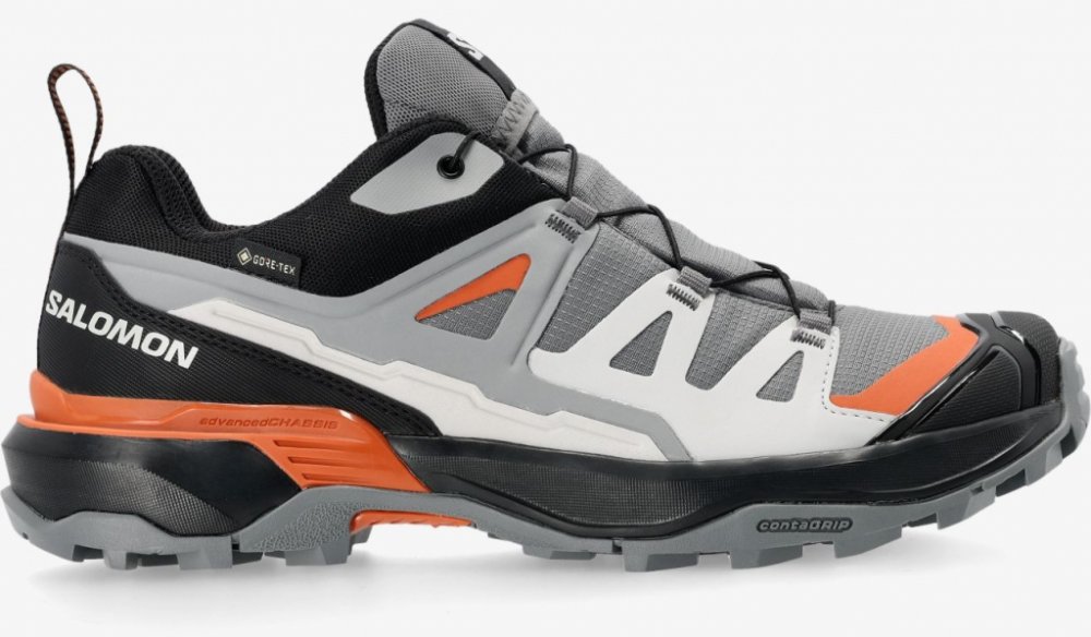 Boty X ULTRA 360 GTX SALOMON jsou vyrobené z kombinace syntetických materiálů a tkanin. Cholewka je z 50% vyrobena z recyklovaných materiálů, což potvrzuje závazek značky ke šetrnému zacházení s přírodou. Boty jsou vybaveny membránou Gore Tex®, která zajišťuje voděodolnost, prodyšnost a větruvzdornost, takže můžete očekávat maximální ochranu a komfort za všech okolností. Kromě toho je cholewka dokonale navržena pomocí technologie SensiFit ™, což je speciální konstrukce zajišťující optimální držení nohy v botě. Obaluje nohu od středové podešve až k šněrovacím částem a poskytuje tak vyšší úroveň pohodlí a stability. Podešev boty je vybavena technologií Contagrip® All Terrain, což je vynikající univerzální podešev pro běžky v terénu a pěší turistiku. Je mimoděk vkusně odolná a zajišťuje stabilnost v různorodém terénu.Výběr složek a geometrie běžeckého profilu byly navrženy tak, aby poskytovaly přilnavost na všech površích, od mokrých lesních stezek po skalnaté horské trasy. Pohodlí při chůzi zajišťuje stélka značky Ortholite®, která se přizpůsobuje tvaru a tlaku chodidla a zaručuje přirozený pohyb a maximální pohodlí. Stélka je vyrobena z prodyšného materiálu, který odvádí vlhkost a má antibakteriální vlastnosti. Boty jsou vybaveny tlumenou středovou podešví pro maximální pohodlí při každém kroku a rámem Advanced Chassis ™, který zlepšuje stabilitu, absorbuje energii na nerovných a variabilních površích a snižuje únavu nohou. Díky systému šněrování Quicklace™ můžete boty snadno a rychle přizpůsobit. Je také třeba zmínit nízký profil boty, který přispívá k celkovému estetickému dojmu a funkčnosti boty X ULTRA 360 GTX SALOMON.