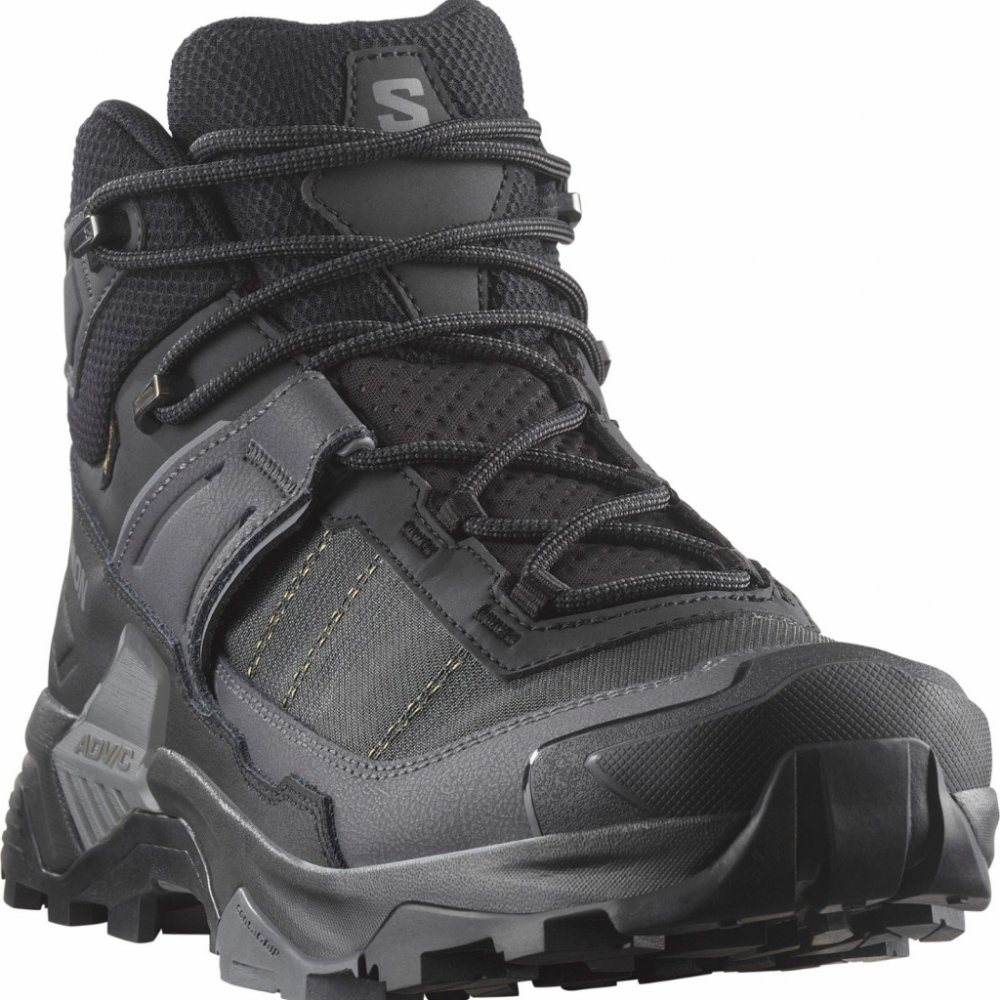 Model Wide je určen pro široká chodidla. Kotníkové boty X Ultra 5 GORE-TEX jsou spolehlivým spojencem na túry, který vám dodá sebedůvěru. Jsou lehké, ale stabilní. Jsou stejně dobré při zdolávání výstupů i sestupů. Boty jsou navrženy tak, aby na cestách poskytovaly bezpečí a obratnost, a to díky mimořádně odolnému svršku z materiálu Matryx, podešvi Contagrip s dlouhou životností, která zajišťuje přilnavost a trakci, a límci uzpůsobenému pro trvalé pohodlí. Podrážka All Terrain Contagrip je určena pro nejrůznější škálu povrchů. Poskytuje odolnost a jistotu na mokrém, suchém, tvrdém i nezpevněném povrchu. Vysoce funkční EVA pěna zajišťující tlumení nárazů. Advanced Chassis je tvarovaná vložka vsazená do podrážky. Poskytuje silnou boční oporu a jistotu ochrany a zároveň optimální pohyblivost a flexibilitu. Pohyblivé výstuhy Active support Šněrování quickLACE Odolná membrána Goretex Model Wide je pro široká chodidla SENSIFIT SensiFit poskytuje noze oporu od mezipodešve až po tkaničky, takže obuv bezpečně a pohodlně padne téměř jako by byla šitá na míru. Systém Sensifit dodává pohodlí a přesně obepne a ochrání vaši nohu. QUICKLACE Dobře známý Salomon rychlošněrovací systém, který zaručuje precizní upevnění nohy v botě během jednoho zatáhnutí za tkaničku. Snadné, rychlé a přesné utažení během vteřiny. Samozřejmostí je i možnost zakoupení nové kevlarové tkaničky a její snadná výměna. CONTAGRIP Contagrip zajišťuje optimální záběr na různorodém povrchu a zároveň zaručuje vynikající stabilitu a dlouhou životnost díky kombinaci speciálních gumových komponentů s protismykovými schopnostmi. ADVANCED CHASSIS Advanced chassis mezi podešví a mezipodešví se nachází pokročilá odlehčená vrstva konstrukce boty Salomon, která poskytuje maximální ovládání pohybu, úsporu energie a díky tlaku na ochrannou vrstvu zaručuje vysoce efektivní a stabilní běh s vysokou citlivostí. MATRYX Patentovaná technologie svršku utkaná z Kevlaru, která zajišťuje pohodlí a účinnou oporu pro nohu. GORE-TEX Membrána Gore-Tex udrží vaše nohy v suchu a garantuje velkou úroveň pohodlí. Byla navržena pro náročné aktivity, kdy je zapotřebí vysoká nepromokavost, ochrana a současně i velmi dobrá prodyšnost.