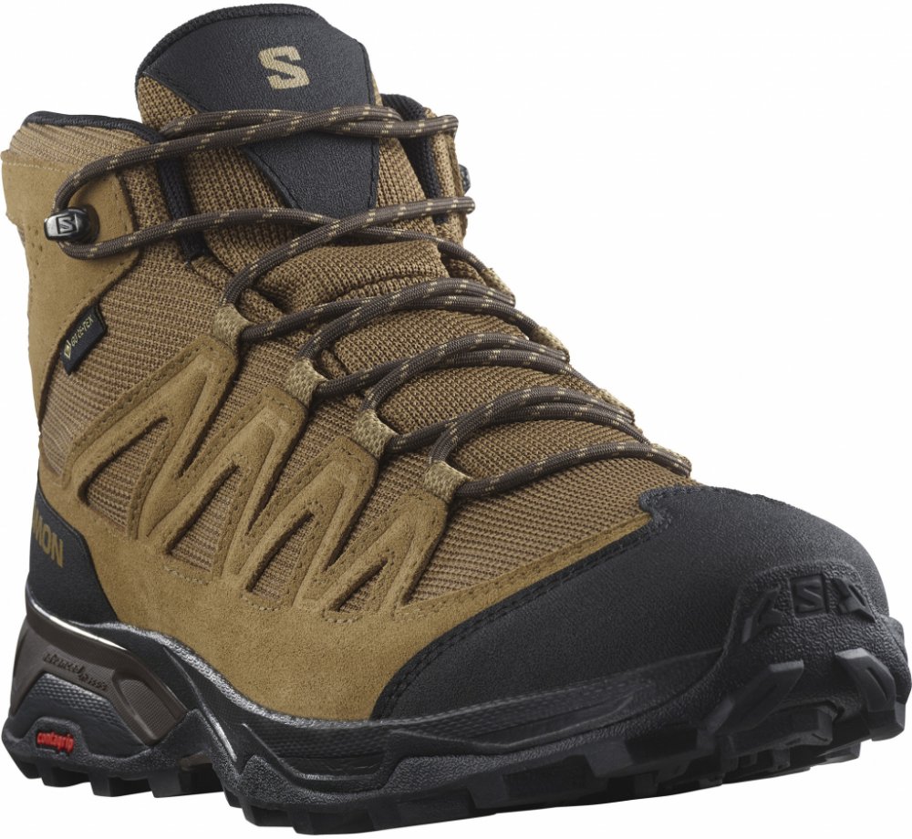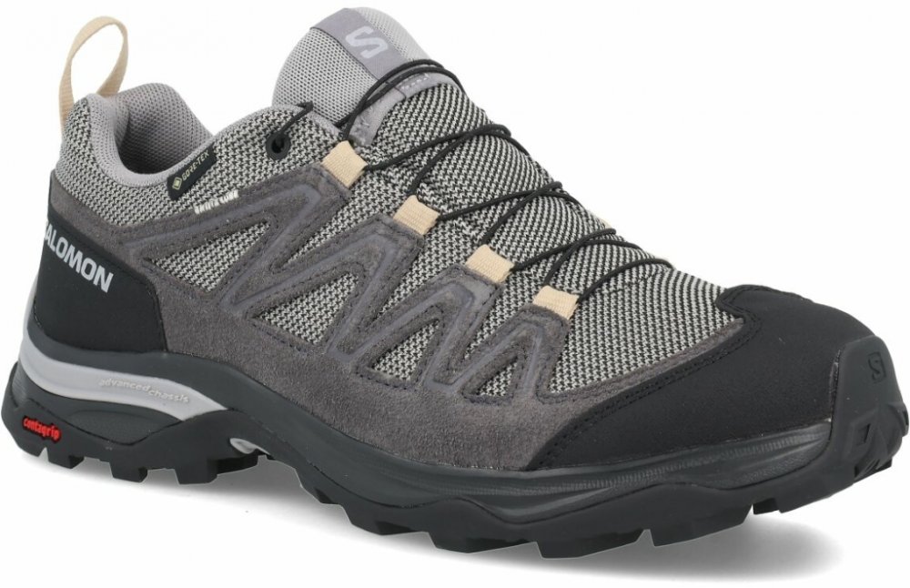 Turistické boty Salomon X Ward Leather GTX si nezapomenete vzít na žádnou túru v horách. Díky membráně GORE-TEX vás nepřekvápí ani nepříznivé počasí a ikdyž bude pršet a stezky budou zablácené, vaše nohy zůstanou v suchu a pohodlí. Boty jsou vyrobeny z odolné semišové kůže a textilního materiálu. Na dlouhé túře také oceníte mezipodešev EnergyCell, která se vyznačuje vysokou mírou pružnosti, a poskytuje tak vašim kloubům a páteři oddech při každém kroku. Podrážka Mud Contagrip vám zajistí vysokou úroveň přilnavosti na měkkém povrchu. Tradiční tkaničkový systém umožní dobré přizpůsobení modelu noze. Zkrátka spolehlivý, technologiemi nabušený model obuvi Salomon, který vás podpoří na každém outdoorovém dobrodružství. Svršek z odolné semišové kůže a prodyšné síťoviny Membrána GORE-TEX pro zvýšenou ochranu proti vodě a zachování dostatečné prodyšnosti Svršek vyrobený technologií SensiFit Mezipodešev EnergyCell, která tlumí část nárazů během túry Podrážka Mud Contagrip pro lepší přilnavost na měkkém povrchu Smyčka v zadní části pro snadné oblékání Stélka Ortholite s antimikrobiálními vlastnostmi Ochranný plast v oblasti prstů Rám podrážky Advanced Chassis zajišťuje stabilitu v náročném terénu CONTRAGRIP MD Contagrip MD je zaměřena na dlouhodobé nošení. Má nejodolnější složení a výrazný vzorek, který funguje stejně dobře na hladkém a tvrdém nebo měkkém a nezpevněném povrchu. ORTHOLITE Díky antibakteriální anatomické stélce OrthoLite se budete cítit jako v bavlnce. Dlouhodobě tlumí nárazy, zabraňuje vzniku nepříjemného zápachu a plísní, odvádí vlhkost a zajistí prodyšnost pro příjemné nošení. GORE-TEX Membrána Gore-Tex udrží vaše nohy v suchu a garantuje velkou úroveň pohodlí. Byla navržena pro náročné aktivity, kdy je zapotřebí vysoká nepromokavost, ochrana a současně i velmi dobrá prodyšnost. SENSIFIT SensiFit poskytuje noze oporu od mezipodešve až po tkaničky, takže obuv bezpečně a pohodlně padne téměř jako by byla šitá na míru. Systém Sensifit dodává pohodlí a přesně obepne a ochrání vaši nohu. ENERGYCELL+ Nová, špičková mezipodešev, která poskytuje výjimečnou návratnost energie a současně výrazné tlumení a trvanlivost.