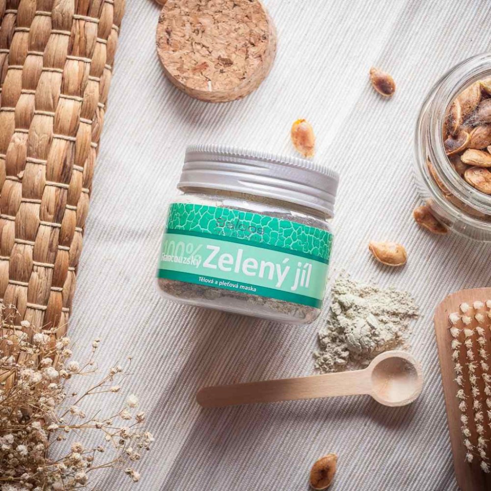TIP:Trápí vás přes léto neustále se mastící pleť, ucpané póry a pupínky? Zelený jíl podpoří celkovou detoxikaci. Je známý tím, že absorbuje z pokožky toxické látky, zbavuje ji nečistot i nežádoucí mastnoty, vyživuje ji, zpevňuje, obnovuje, vyhlazuje a zklidňuje. Ideálně jej používejte 2x-3x týdně. Uvidíte, že vaše pleť bude jen lepší.