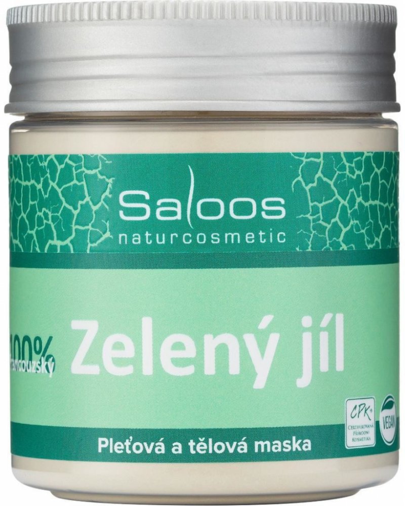 Zázrak jménem zelený jíl dokáže absorbovat z pokožky toxické látky a zbavuje ji nečistot i nežádoucí mastnoty. Tělová a pleťová maska Zelený jíl od Saloos vyživuje, zpevňuje, regeneruje, vyhlazuje a zklidňuje podrážděnou pokožku. Využívá se také při revmatických potížích nebo k prohřátí různých částí těla. Je vhodný do čistících a regeneračních pleťových a tělových masek, jemných peelingů, teplých i studených zábalů, k obkladům i koupelím.