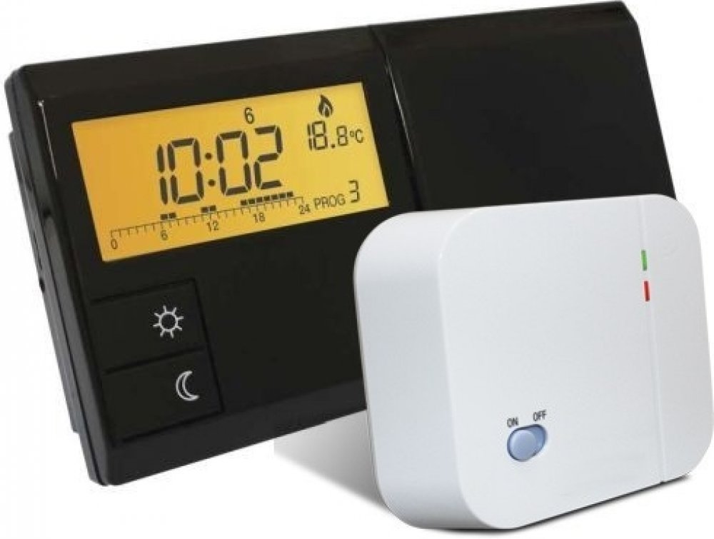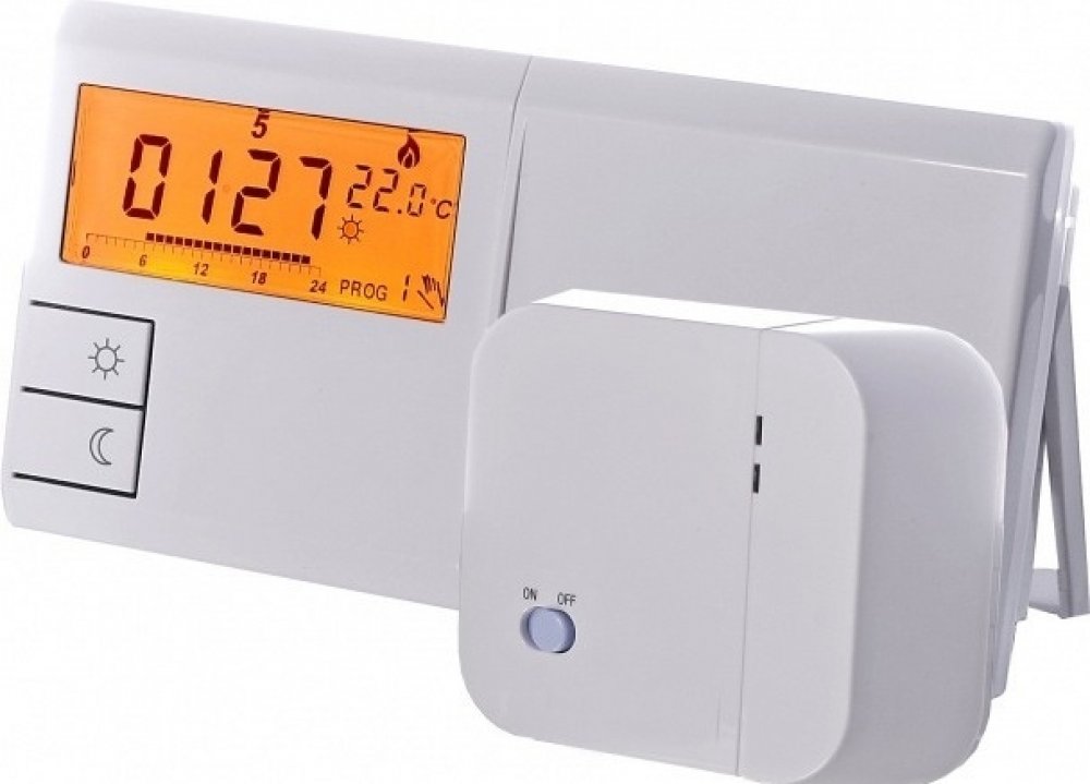 Týdenní programovatelný termostat, pomocí kterého lze jednoduše a efektivně nastavit kontrolu teploty v místnosti. Vzhledem ke svému širokému využití je univerzální programovatelný termostat s beznapěťovým kontaktem, vhodný k regulaci všech typů kotlů, elektrických přímotopů, spíná zařízení od 0-230V s maximální zátěží 5A.