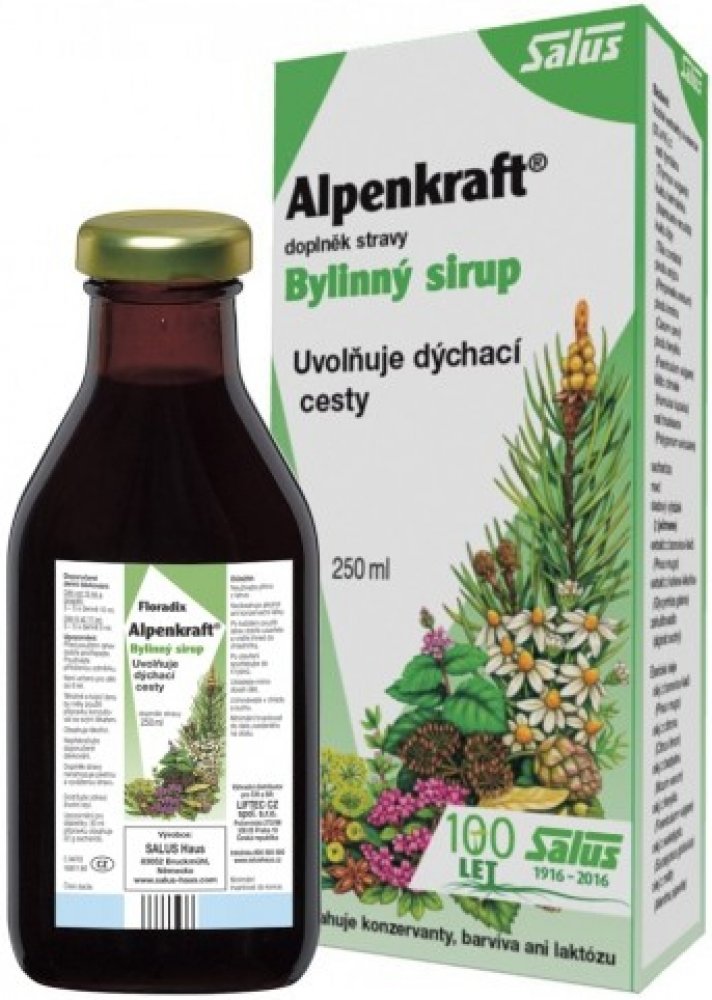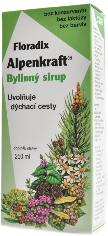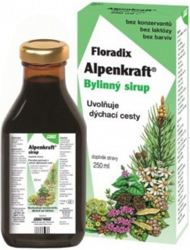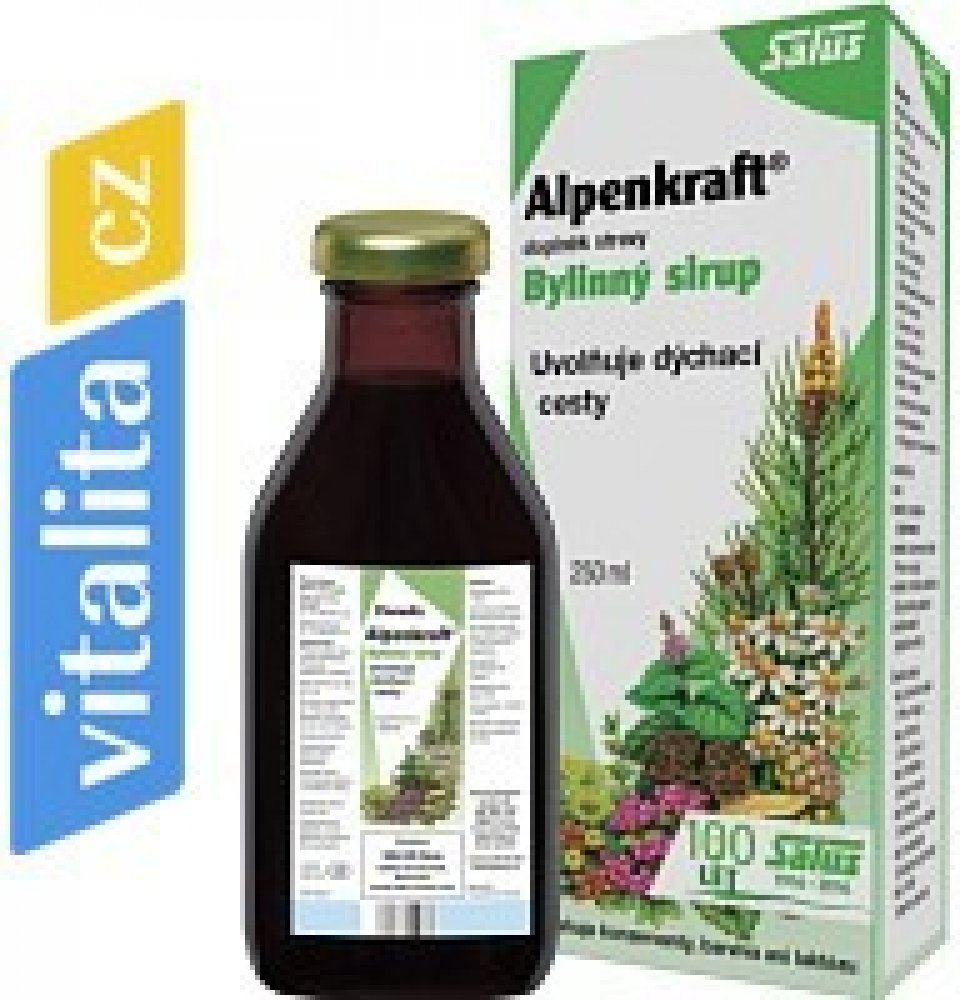 Obsah: 250 mlDávkování: dospělí 3 – 5x denně 10 ml děti 6 – 12 let 3 – 5x denně 5 ml Sirup nechte rozplynout v ústech, nezapíjejte! Složky obsažené v Alpenkraftu působí na sliznici v dutině ústní a v krku.