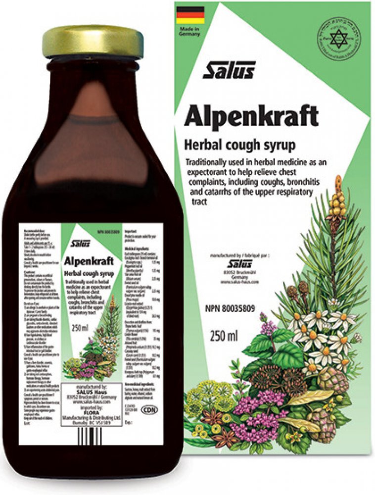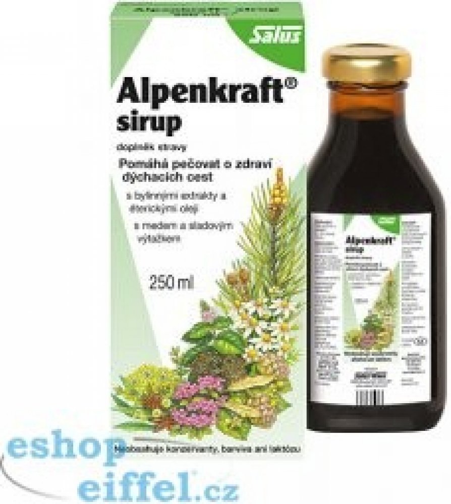 Alpenkraft® je doporučován zpěváky a veřejnými mluvčími. Díky lahodné chuti je oblíbený u dětí (vhodný od 6 let) i dospělých. Složení: vodné extrakty a esence (33,4%) z nati tymiánu, květu heřmánku, květu lípy, plodu anýzu, plodu kmínu, plodu fenyklu, šištic chmele, nati truskavce, sacharóza, med, sladový výtažek, ethanol (< 1,2 % vol), extrakt z borovice kleči, extrakt z kořene, lékořice; éterické oleje: olej z borovice kleči, olej z citronu, olej z badyánu, olej z fenyklu, olej z eukalyptu, olej z máty. Neobsahuje konzervační látky, barviva ani jiné syntetické přídatné látky.