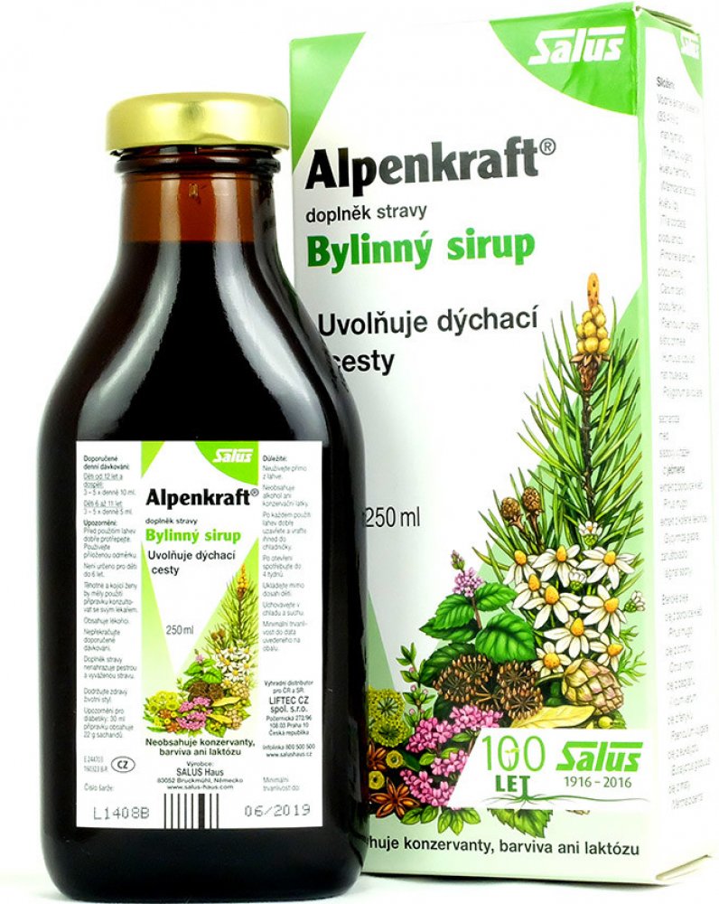 Popis: Salus Alpenkraft® je rostlinný sirup obsahující výtažky, esence z bylin a navíc obsahuje také čistý med a sladový extrakt. Díky speciálně vybraným bylinám a dalším složkám je Alpenkraft® vhodný pro ty, kteří jsou v kontaktu s nečistotami jako je cigaretový kouř, prach a průmyslové výpary.
