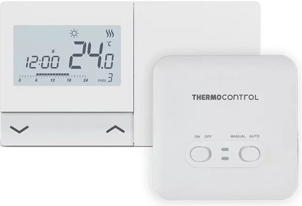 Typ termostatu: Bezdrátový, týdenní programovatelný Rozsah teploty: 5-30 °C Napájení: 2 x AA baterie (termostat), 230 V AC (přijímač) Počet programovatelných úseků: 12 pro každý den Komunikační frekvence: 868 MHz Dosah signálu: Až 100 metrů v otevřeném prostoru Rozměry: 120 x 96 x 27 mm Způsob připojení a výhody