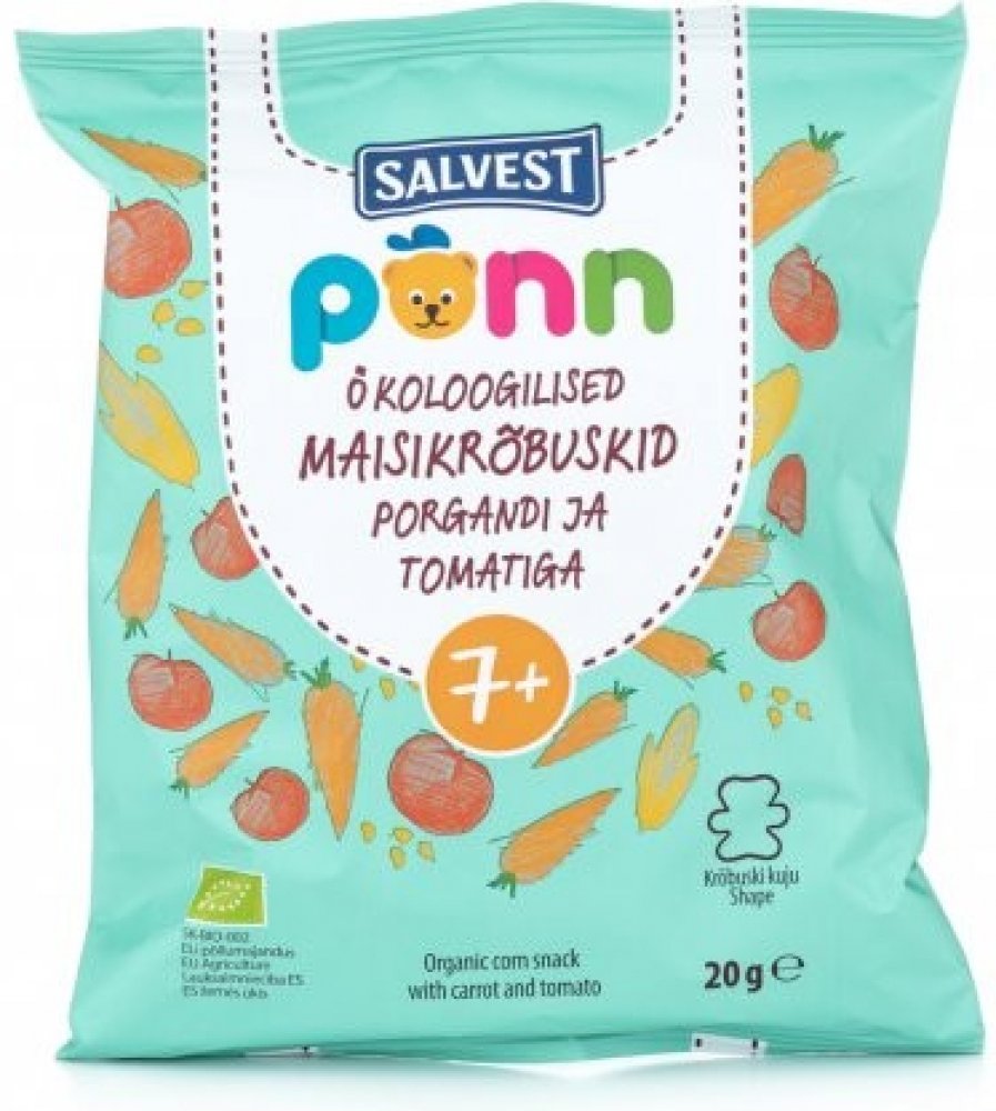 Složení: *kukuřičná krupice (81 %), *slunečnicový olej, *sušená mrkev (3,5 %), *sušená rajčata (3,5 %), thiamin hydrochlorid (vitamin B1). Bez lepku.*z ekologického zemědělství.