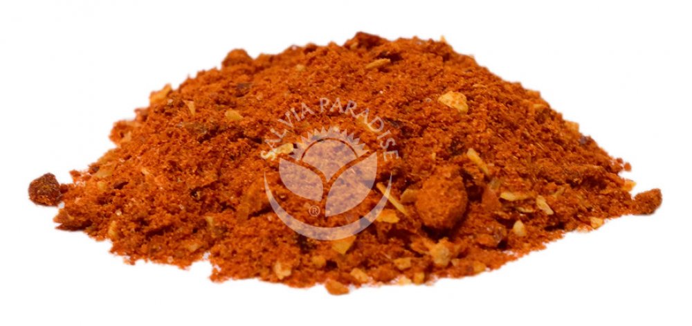 Složení: chilli mleté a drcené, paprika mletá a drcená, česnek, sůl (max. 8 %), rajčatový prášek, koriandr, kmín římský