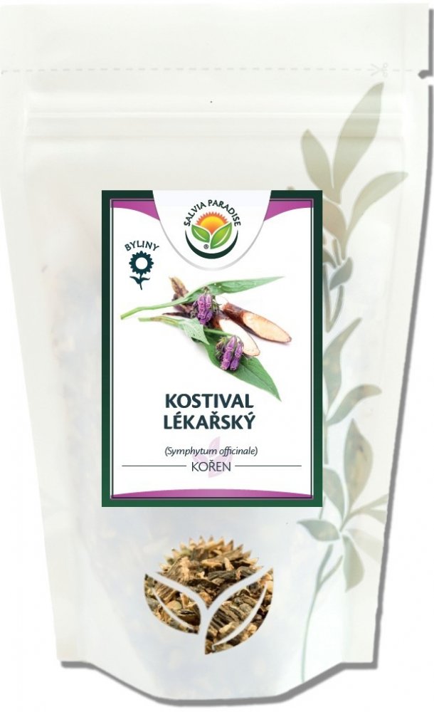 Kostival lékařský (lat. Symphytum officinale) je vytrvalá bylina dorůstající výšky až 100 cm. Patří do čeledi Boraginaceae – brutnákovité. Střídavé, jemně chlupaté, vejčitě kopinaté listy jsou usazené na přímé lodyze, která se v horní části bohatě větví. Květenství je zbarvené od načervenalé do fialové barvy, výjimečně se lze setkat s bílou či růžovou. Kvete od května do července. Rostlině vyhovuje vlhčí prostředí s hlinitou, až jílovitou půdou. Nejčastěji ji nalézáme u potoků i břehů řek, na mokrých loukách či v lesích. Předmětem sběru je kořen, který se užívá zevně.. Kostival lékařský kořen 10 g je kvalitní produkt od značky Salvia Paradise.