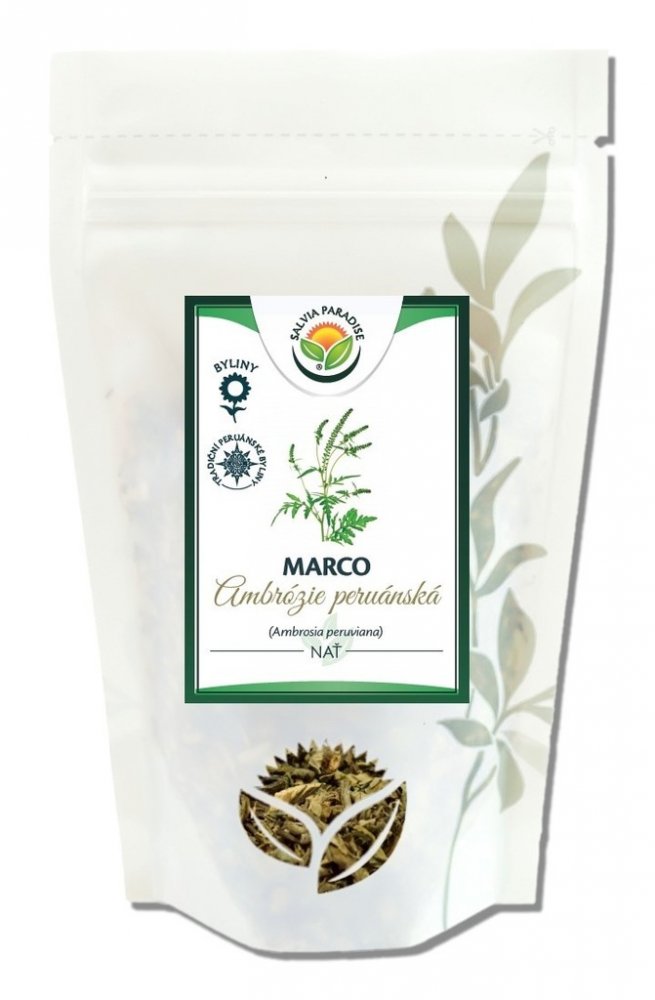 Marco - Ambrosia peruviana 50 g. Výhodné balení 50 g jen za 100 Kč. Marco je jednoletá keřovitá bylina pocházející z peruánských And, je známá svojí intenzivní vůní. Velmi často se vyskytuje jako křoví na vlhkých a blátivých březích řek v pobřežních oblastech, andských údolích a na okrajích pralesa.