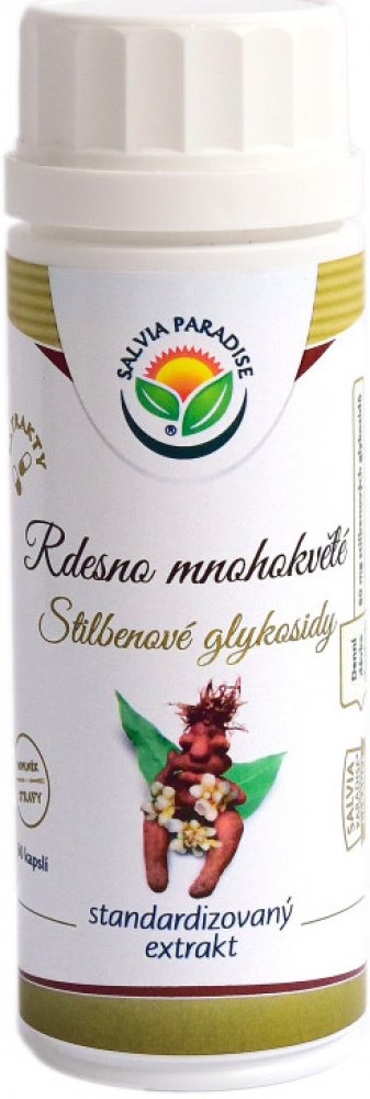 Doporučená denní dávka obsahuje 80 mg stilbenových glykosidů. Kapsle jsou vyrobeny ze standardizovaného extraktu z rostliny rdesno mnohokvěté – Polygonum multiflorum. Extrakt je standardizovaný na obsah stilbenových glykosidů. Rdesno mnohokvěté je jednoletá popínavá rostlina dorůstající délky až 10 m. Červenohnědé kořeny jsou dřevnaté, lodyha nachové barvy lysá, v horní části rozvětvená. Rdesno mnohokvěté či He Shou Wu je velmi ceněná bylina tradiční čínské medicíny. Využívá se před a po sportovní aktivitě. Je vhodné především pro muže. Má příznivé účinky na kardiovaskulární systém, pomáhá udržovat správnou hladinu cholesterolu. Ustanovení nařízení Evropského parlamentu a Rady (ES) č. 1924/2006, o výživových a zdravotních tvrzeních, nám nedovoluje informovat vás o dalších pozitivních účincích této rostliny na váš organismus. Informace o působení si prosím dohledejte ve volně dostupných zdrojích na internetu či v literatuře. Složení: 100% Polygonum multiflorum standardizovaný extrakt, 500 mg/tobolka. Obal kapsle: HPMC (hypromelosa). Kapsle jsou rostlinného původu, vhodné i pro vegetariány či vegany. Doporučené dávkování: Užíváme 1 tobolku 2× denně, 20 min. před jídlem. Obsah: 60 ks Upozornění: Neslouží jako náhrada pestré stravy. Nepřekračujte doporučené denní dávkování. Ukládejte na bezpečném místě mimo dosah dětí. Skladujte v temnu a suchu. Doplněk stravy