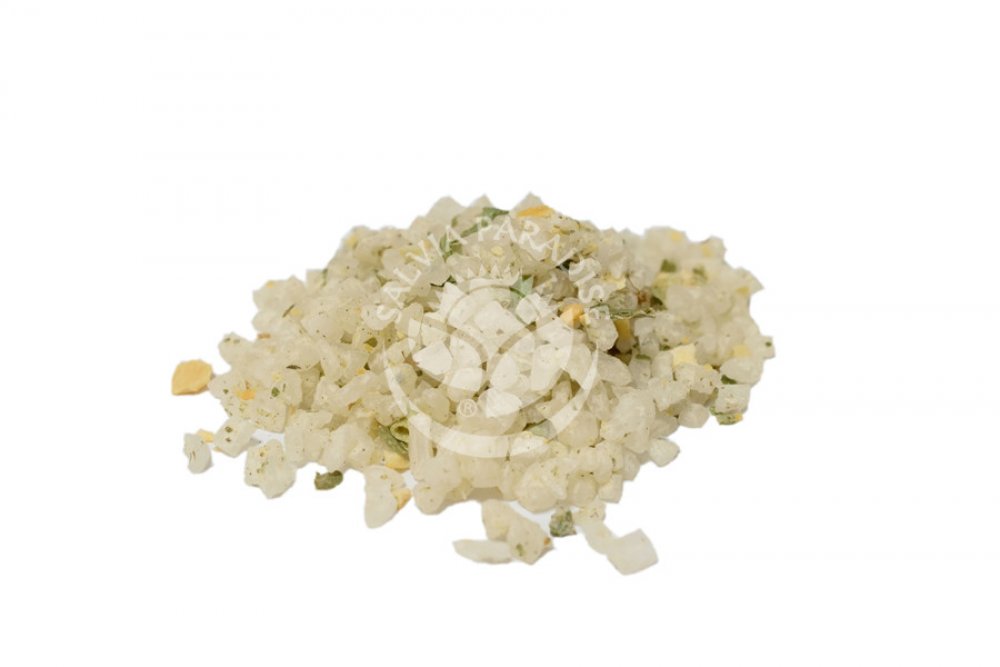 Složení: mořská sůl hrubá (max. 84,3 %), česnek, majoránka, cibule, pažitka